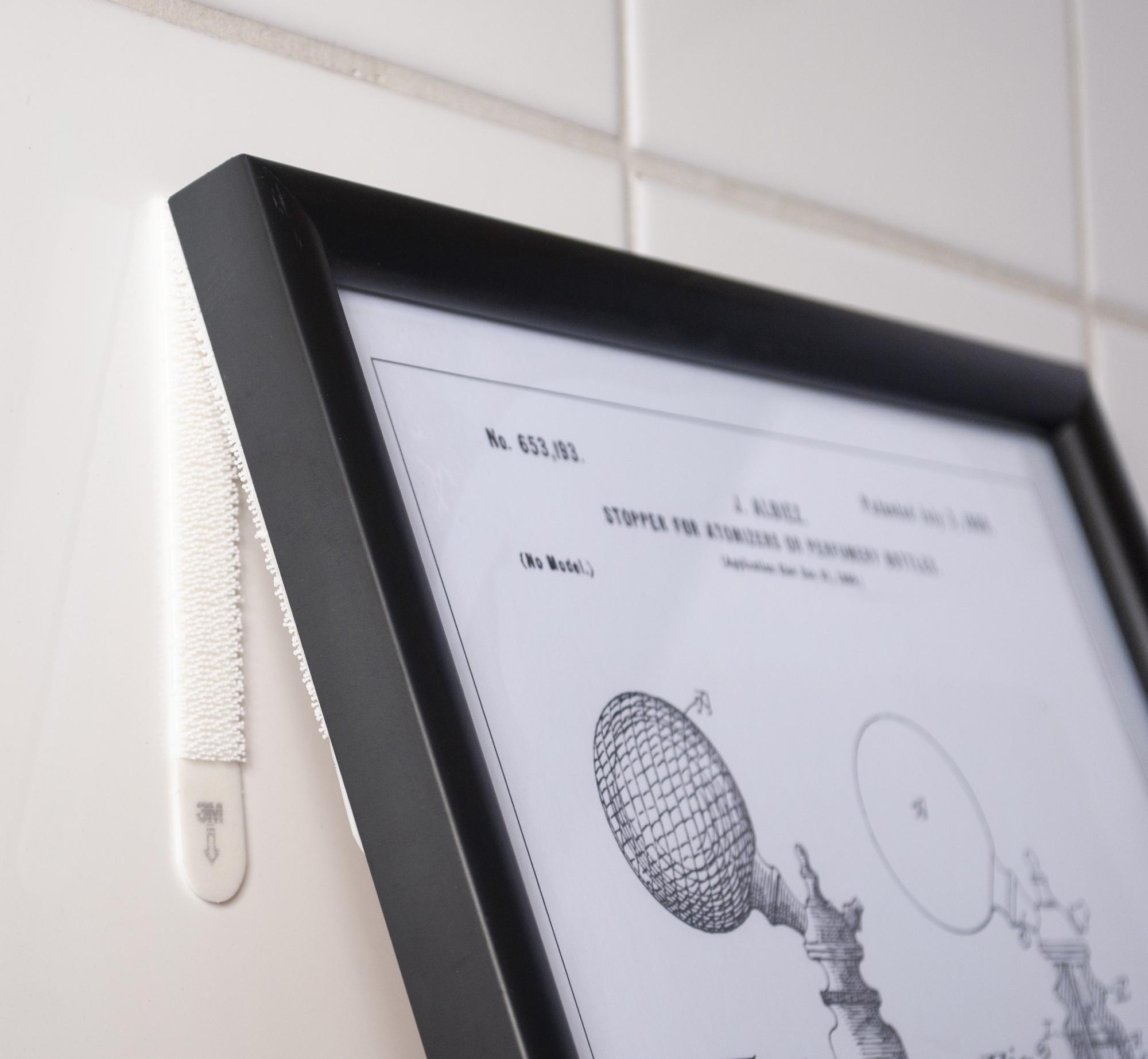 Heng opp dine bilder og rammer enklere enn noensinne ved hjelp av borrelås! Disse smarte, selvheftende borrelåsremsene festes enkelt på baksiden av rammen din samt på veggen der rammen skal henge. Metoden er perfekt for deg som ikke vil lage stygge borrehull eller merker på veggen! Kroken kan festes på alle typer vegger, men tenk på at tapeten kan ta skade om du tar den av. Instruksjoner: Start med å rengjøre veggens overflate og la tørke (veggen må ikke ha noen skader). Så setter du borrelåsene sammen i par og drar av plastbeskyttelsen som dekker limet på den ene siden. Plasser siden med limet mot baksiden av rammen og press den godt på plass. Når alle par er på plass tar du vekk plasten som nå peker utover og presser rammen på plass på veggen. Når borrelåsene er festet på veggen drar du forsiktig løs rammen og presser på remsene som sitter på veggen i ca 30 sekunder. For at limet skal få tid til å virke ordentlig venter du i 60 minutter før du fester rammen igjen. Se instruksjonsvideo nedenfor. 3 M Command Borrelås Medium Hvit - 4-par holder til en ramme på maks 5 kg, passer rammer opp til 70x100 cm. Mål: 1,3x7,3 cm (BxL)