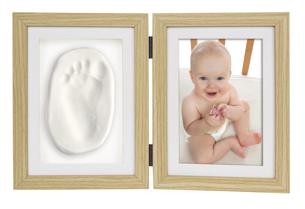 Gi noen et sukkerkick når du viser frem denne fine folderammen som rommer både et bilde av barnet ditt og et fot- eller håndavtrykk! Rammen er laget av tre, holdes sammen med hengsler og har 2 åpninger. Inkludert er et gipskit som du bruker for å skape et søtt hånd- eller fotavtrykk.