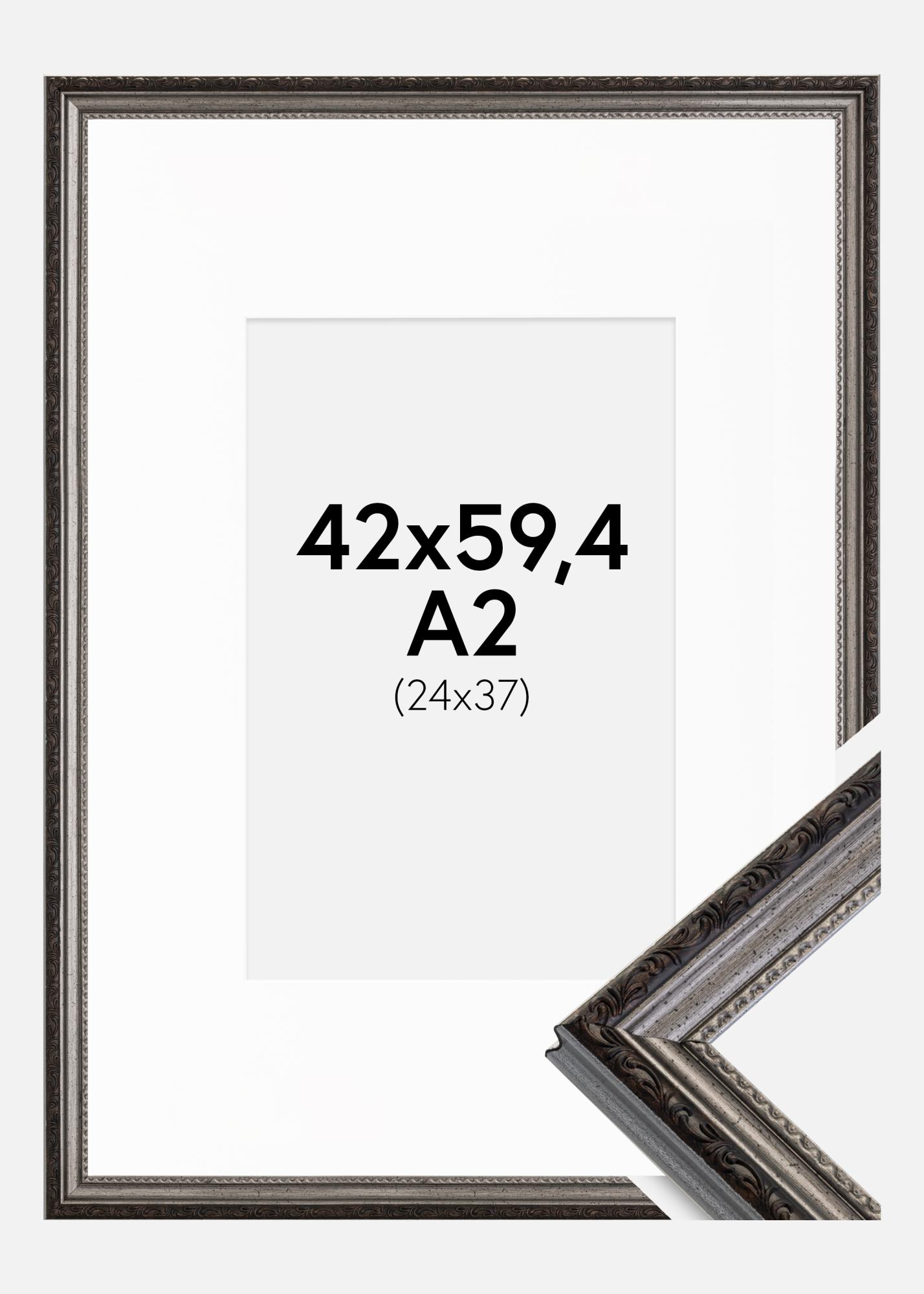 Ramme Abisko Sølv 42x59,4 cm (A2) - Passepartout Hvit 25x38 cm