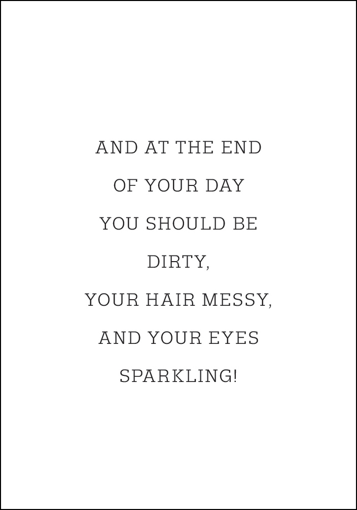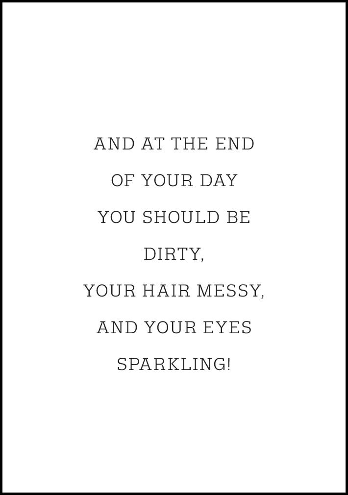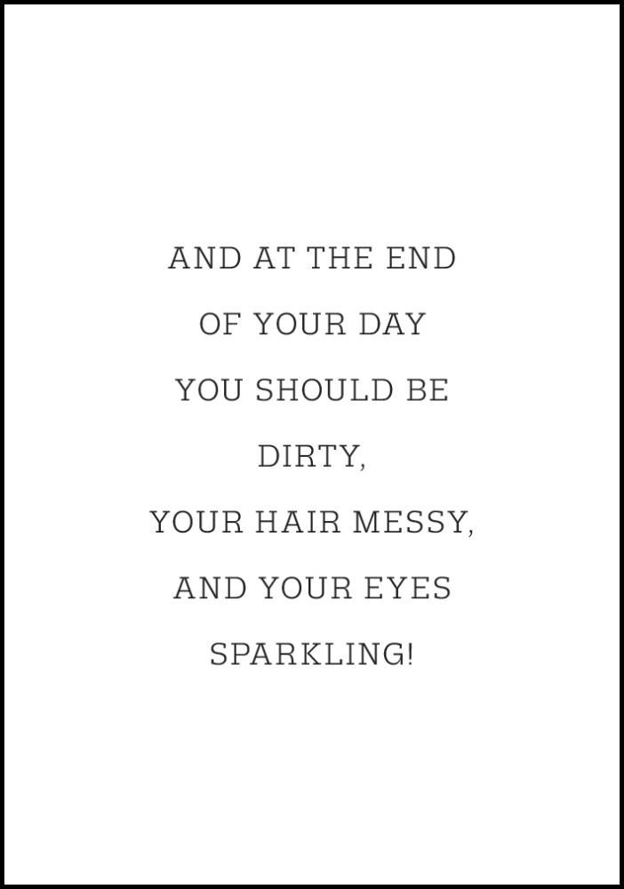 https://www.bgafotobutikk.no/And-at-the-end-of-your-day-you-should-be-dirty-Plakat-21x29_7-cm-A451024404And at the end of your day you should be dirty Plakathttps://www.bgafotobutikk.no/resource/u2vG/0dl/TCgOWYTiUf2/Affischer-Posters/2018-08/med-ram/quotes_mar_2018-2-07.jpghttps://www.bgafotobutikk.no/resource/u4eq/4L6/H7CD8pfIZm7/Prints/Category/quotes_mar_2018-2-07.jpg128.10NOKDiscontinued/Plakater/Plakater/NyheterEn pen plakat til å pryde hjemmets vegger med, er like egnet til å henges alene, som sammen med andre trykk på en bildevegg. Komplettere plakaten med en stilig ramme som passer til innredningen i rommet og fremhever motivet for å skape en god følelse av miljøet.Bildverkstad21x29.7 cm (A4)21x29.7 cm2018-08-14T21:22:40+02:00