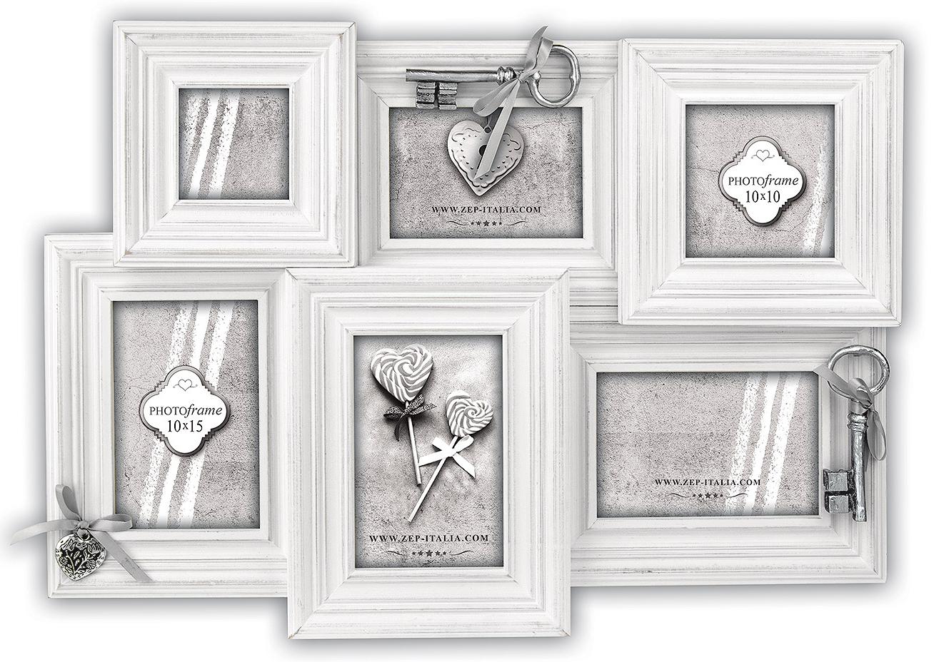 Fremkall favorittbildene dine og ram dem inn i denne landlige collagerammen med dekorative sølvdetaljer. Collagerammen har plass til 6 bilder i bildeformat 7 x 7 cm / 9 x 13 cm / 10 x 10 cm/ 10 x 15 cm. Collagerammen er laget av tre og kommer i en hvit nyanse. Utvendig mål 53 x 37,5 cm. Har veggfeste.