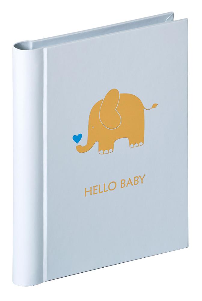 ”Hello baby” står det på dette søte minialbumet som er tiltenkt minsten i familien. Albumet er lyseblått med motiv av en nydelig elefantunge over teksten. Inni finner du 30 plastlommer som blandes med hjertemønster, elefanter og blomster. På første siden finnes 6 linjer du kan skrive noe fint på.