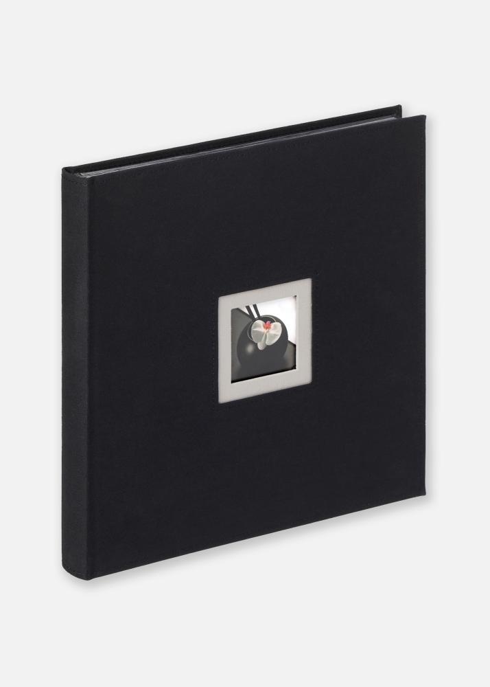 Velg selv i hvilken utførelse du vil vise frem dine bilder med dette elegante fotoalbummet. Albumet er svart med en gråkantet åpning foran der du kan plassere et bilde eller en tekst. Langs albumets kanter er det en svart søm som en dekorativ detalj. Inni finner du 50 svarte sider som du selv limer inn dine bilder og andre små minner på.