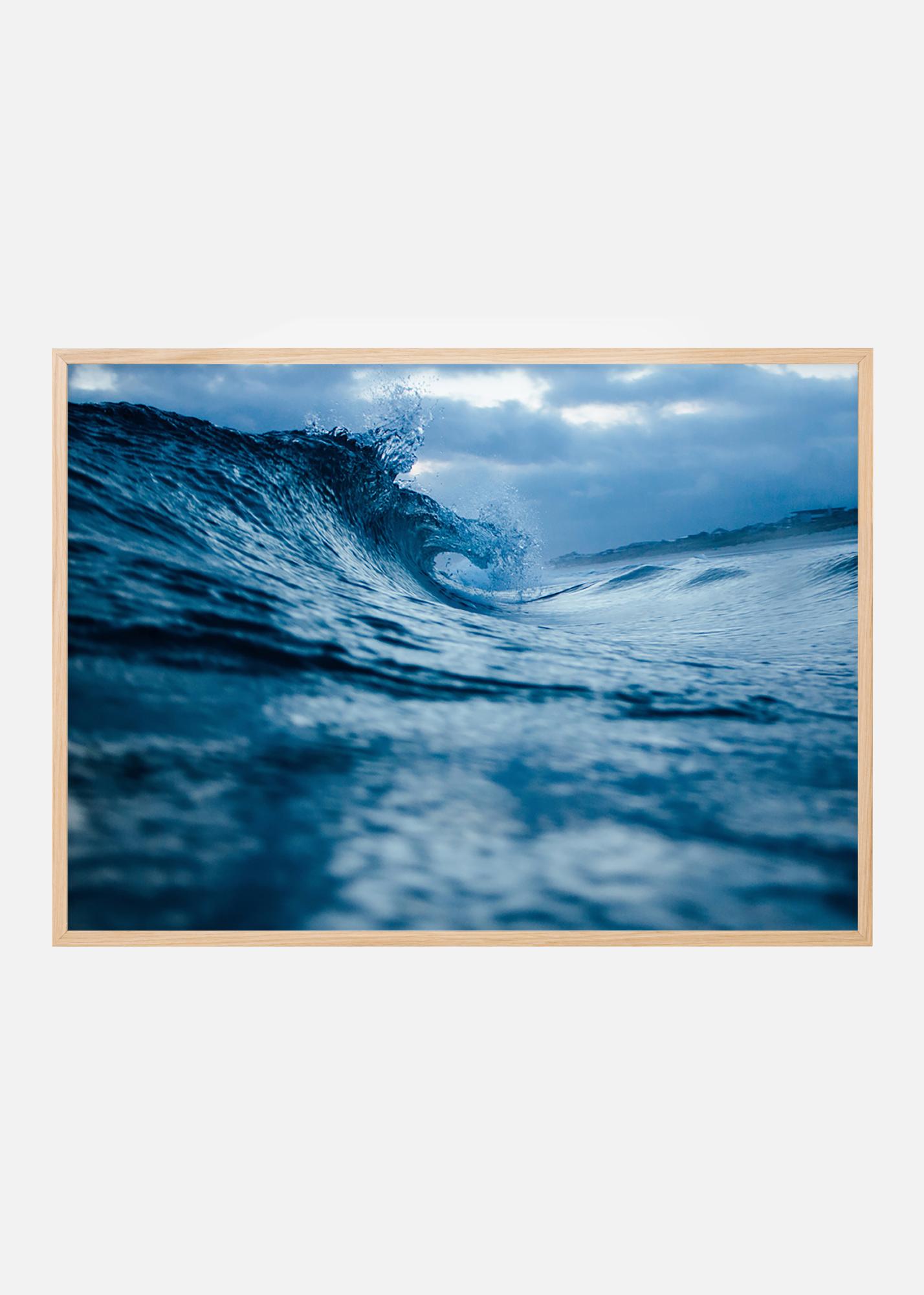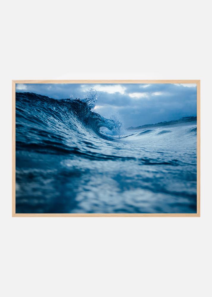 Er du alltid på jakt etter den perfekte bølgen, så er denne plakaten for deg. Et actionfylt fotografi i kalde, blå nyanser, av en bølge som bryter nærme land. Bildet er den perfekte gave til en surfeentusiast og blir komplett med en pent slitt ramme som minner om rekved. Passer også godt i sommerhuset.