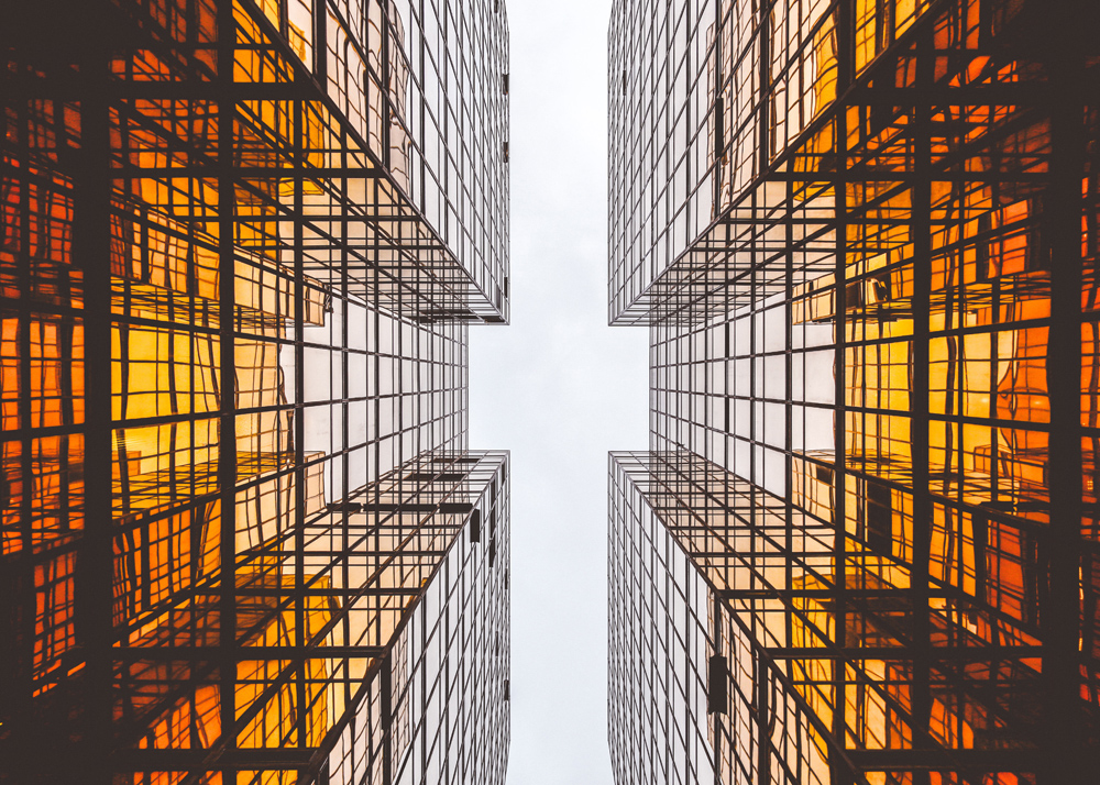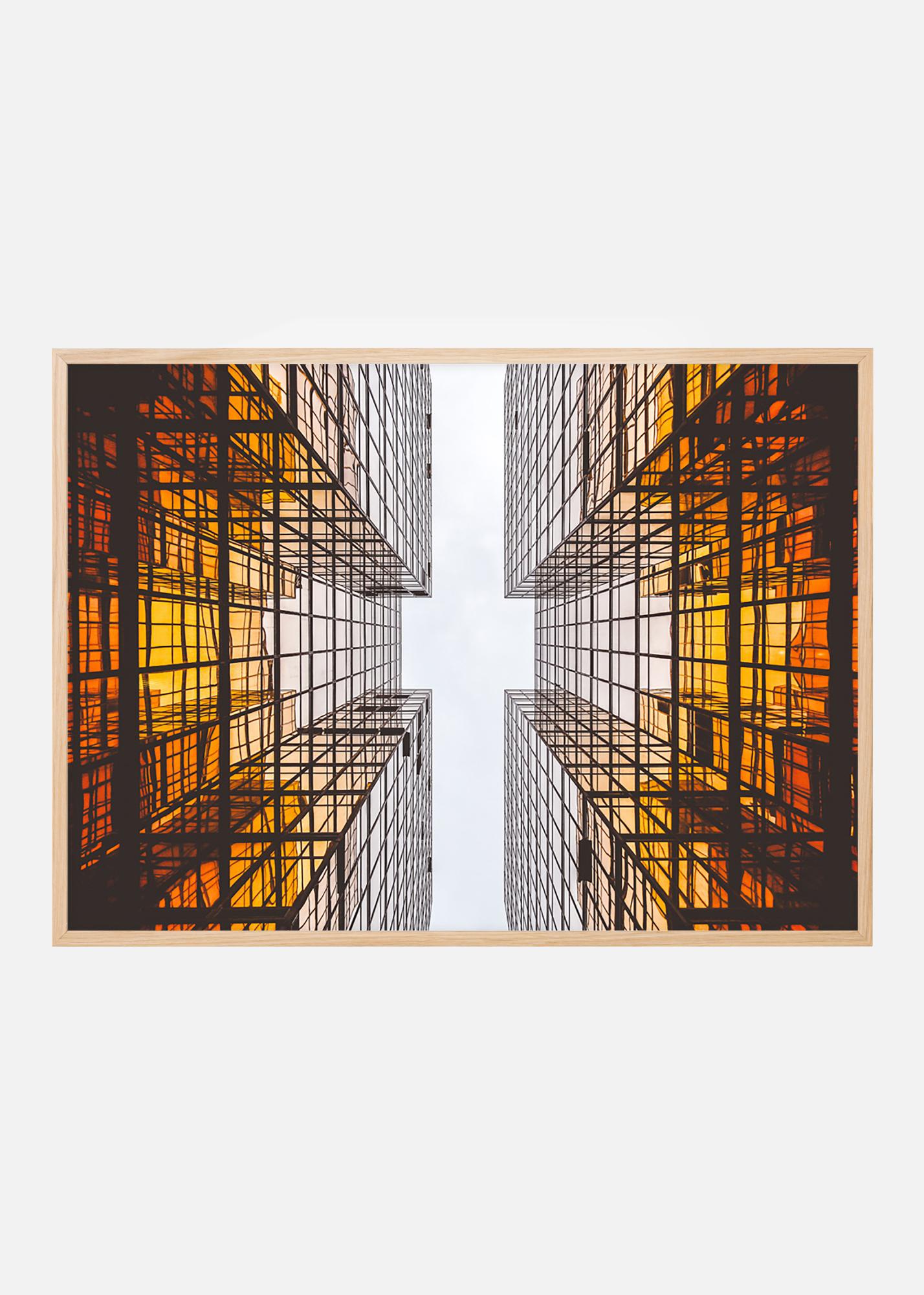 Plakat med futuristisk arkitektur, som med sine grafiske linjer skaper et spennende mønster. Den dype oransje fargen i bygningens grunnmur skaper en flott kontrast mot den hvite himmelen. Plakaten passer bra i en tynn ramme i en minimalistisk innredning eller sammen med andre stiler med grafiske elementer. Kombiner gjerne med andre plakater med spennende arkitektur eller byutsikter.