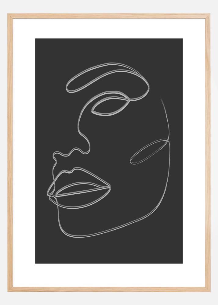 En vakker portrettplakat laget med enkle penselstrøk. Enkle linjer danner en kvinnes ansikt på en beige bakgrunn. Enkelhet i all sin prakt. De enkle linjene danner et øye, en nese og en munn. Ta med galleriet inn i hjemmet ditt med denne plakaten.