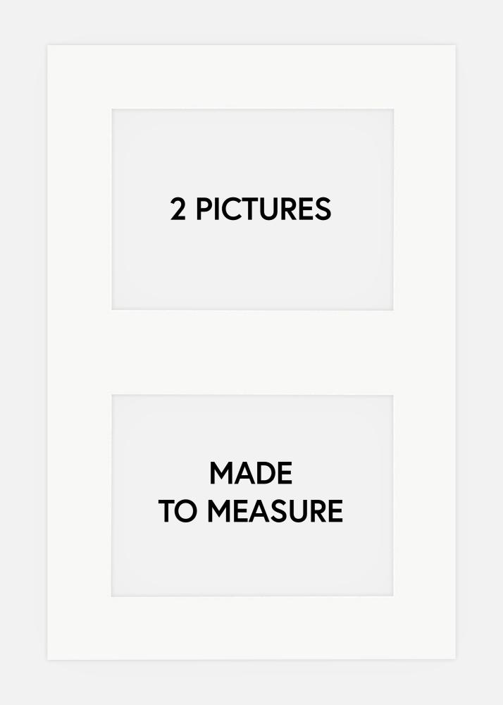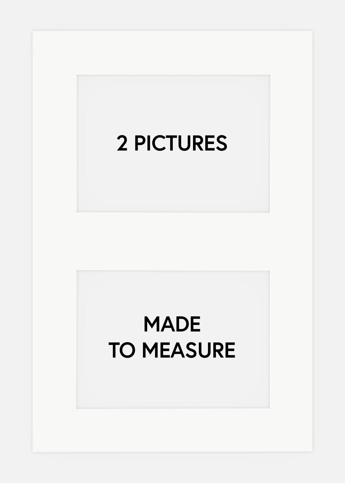 Her bestiller du enkelt collagepassepartouter med plass til 2 bilder. For å bestille angir du passepartoutets yttermål (som skal være samme mål som rammen du skal ha) deretter angir du ønsket innermål som alltid skal være 1 cm mindre enn bildene du skal ramme inn. Du kan bare bestille her om du har to bilder i samme størrelse, ønsker du mer avanserte collagepassepartouter må du kontakte kundeservice for din bestilling.