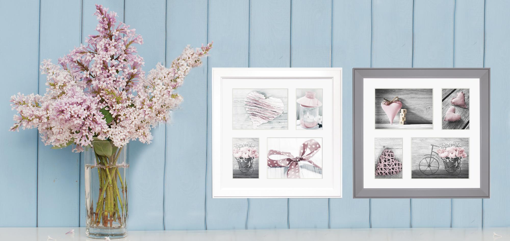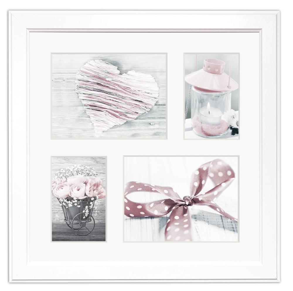 Kan du ikke bestemme deg for hvilket bilde som ble best på festen eller bryllupet er det like kjekt å lage en collage av favorittbildene. Her har vi en lekker collageramme som samler bildene i en symmetrisk helhet. Rammen har detaljer av luksus og den er helt hvit noe som gjør at den er enkel å matche. Inni sitter et hvitt passepartout som strukturerer og beskytter.