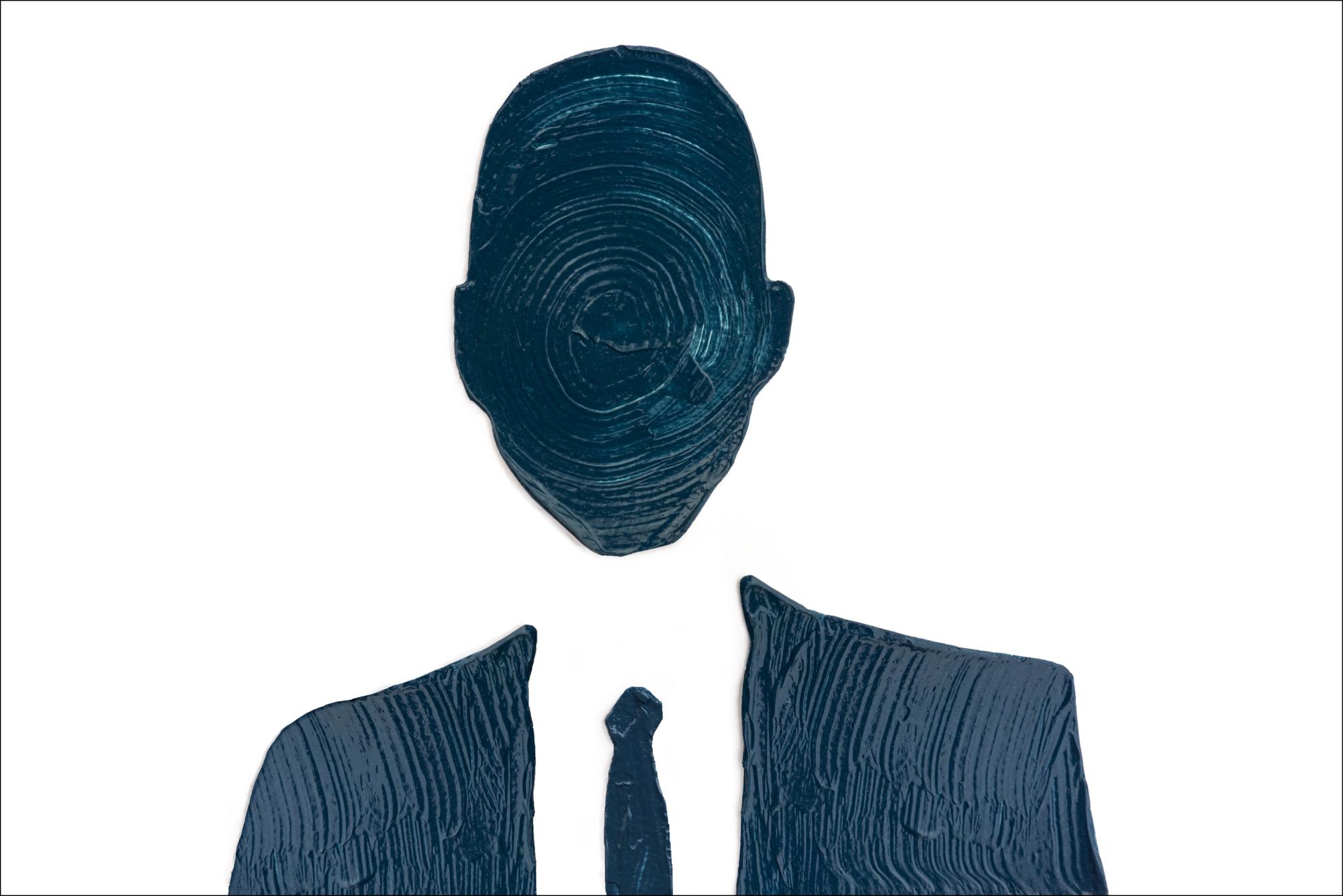 En impresjonistisk plakat med en ansiktsløs mann. Her sier de tomme mellomrommene så mye som de fylte, der formen på mannen er gjort med tykke, teksturale blå penselstrøk. Han har ikke noe ansikt, men det som ser ut som et fingeravtrykk i stedet. Betrakt fantasien i dette stykket.