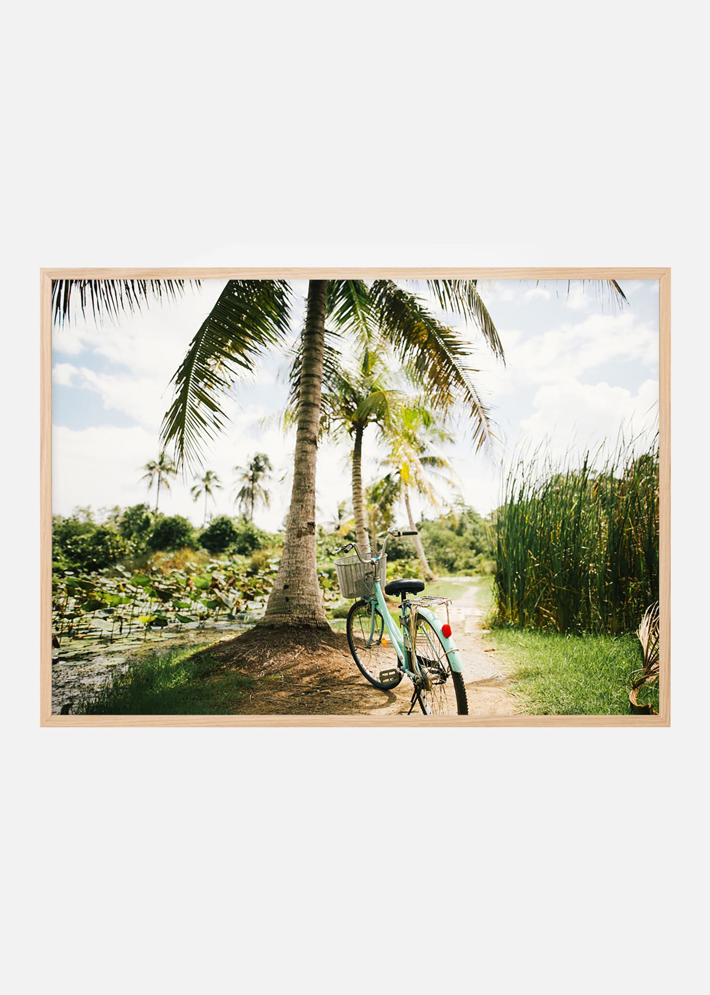 Plakat som sender tankene til karibiske, late dager i solen med sand mellom tærne. Tenk å kunne se på denne plakaten og drømme seg bort på snøtunge vinterdager. Plakaten har grønne og blå tropiske nyanser og palmer som kan pryde veggene i alle typer rom som trenger litt sol. Kan kombineres med andre bilder med samme tema på en bildevegg.