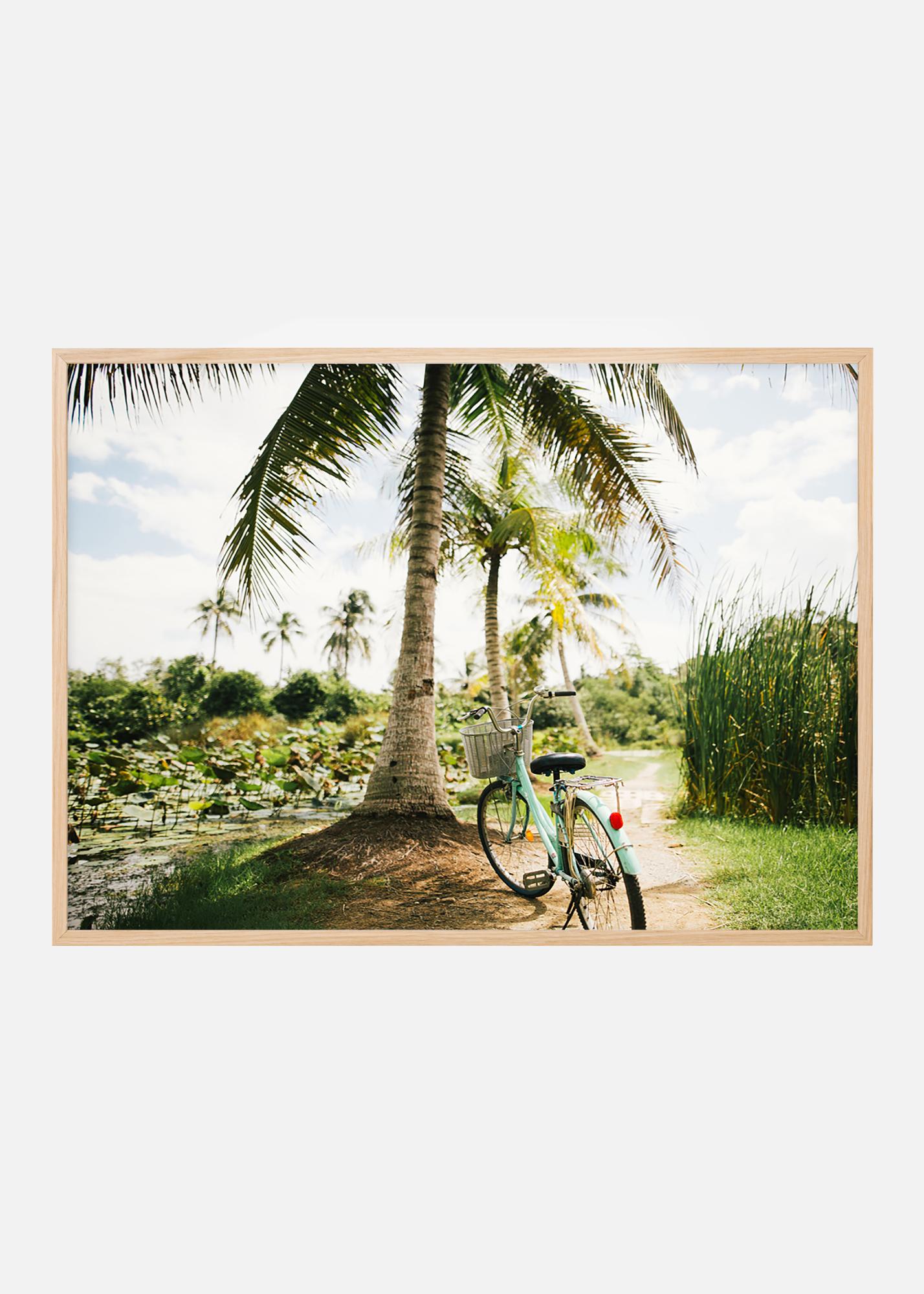 Plakat som sender tankene til karibiske, late dager i solen med sand mellom tærne. Tenk å kunne se på denne plakaten og drømme seg bort på snøtunge vinterdager. Plakaten har grønne og blå tropiske nyanser og palmer som kan pryde veggene i alle typer rom som trenger litt sol. Kan kombineres med andre bilder med samme tema på en bildevegg.