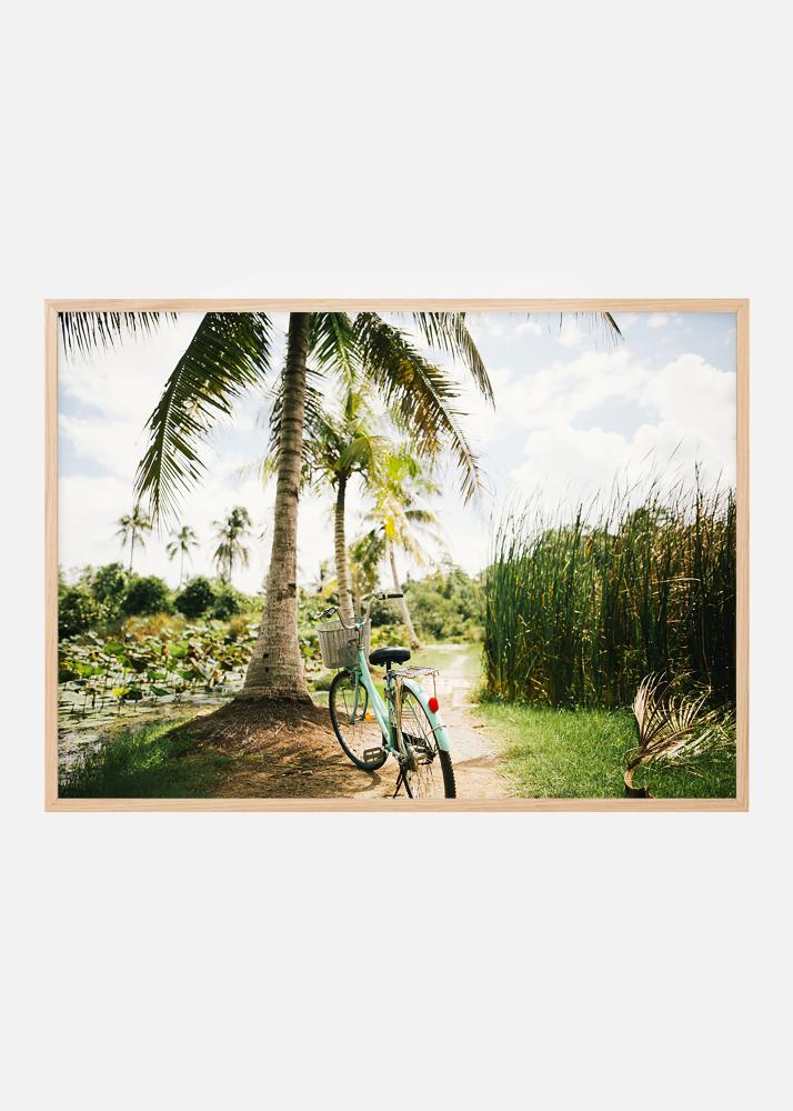 Plakat som sender tankene til karibiske, late dager i solen med sand mellom tærne. Tenk å kunne se på denne plakaten og drømme seg bort på snøtunge vinterdager. Plakaten har grønne og blå tropiske nyanser og palmer som kan pryde veggene i alle typer rom som trenger litt sol. Kan kombineres med andre bilder med samme tema på en bildevegg.