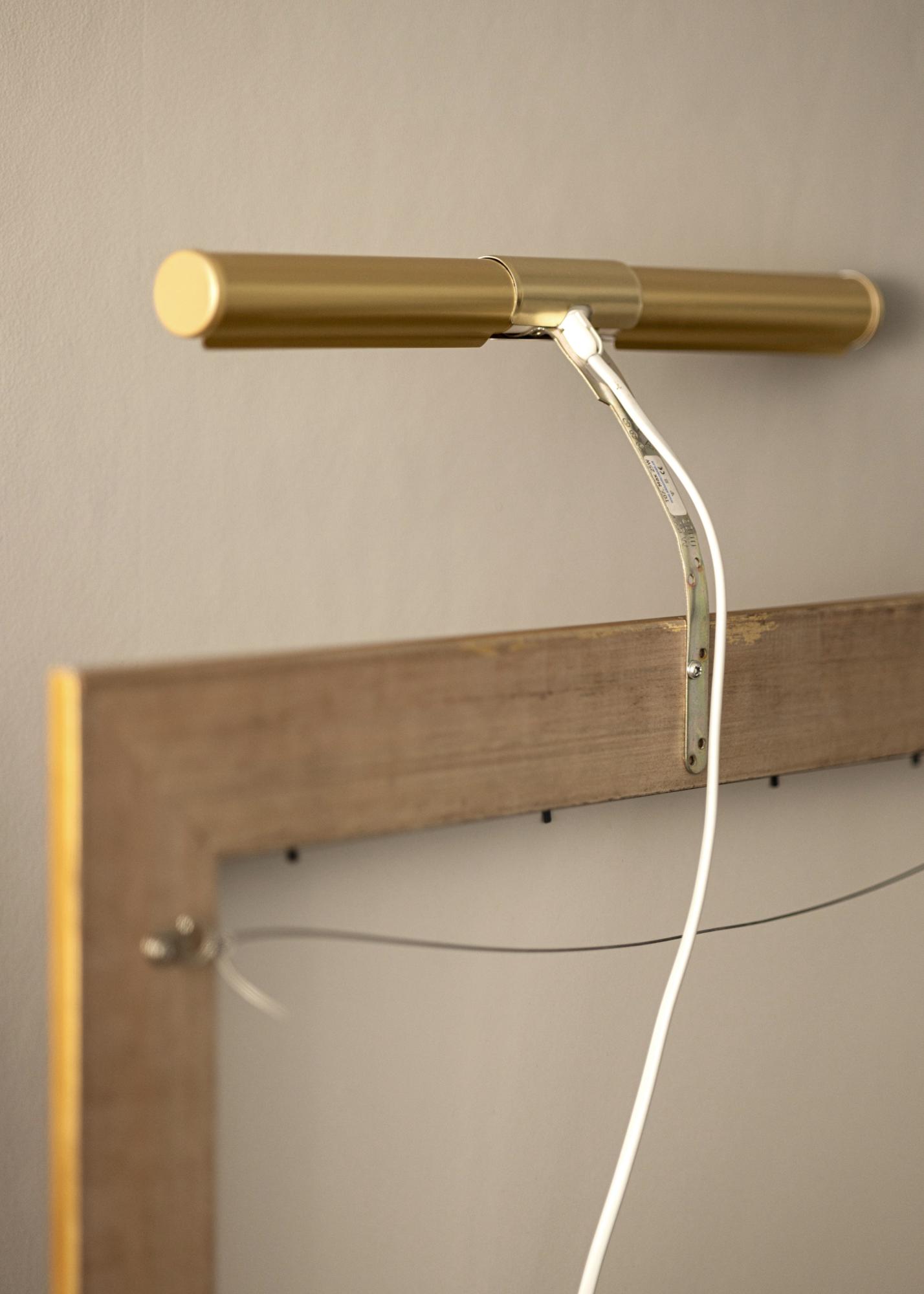 Vanligvis fester du maleribelysningen på baksiden av rammen, men ulempen med dette er at det krever en treramme (visse komposittrammer går også bra) som har en bred profil for at det skal være mulig å skru inn skruer i rammen. Med vårt veggfeste så slipper du å tenke på det, men fester bare belysningen direkte på veggen bak rammen.