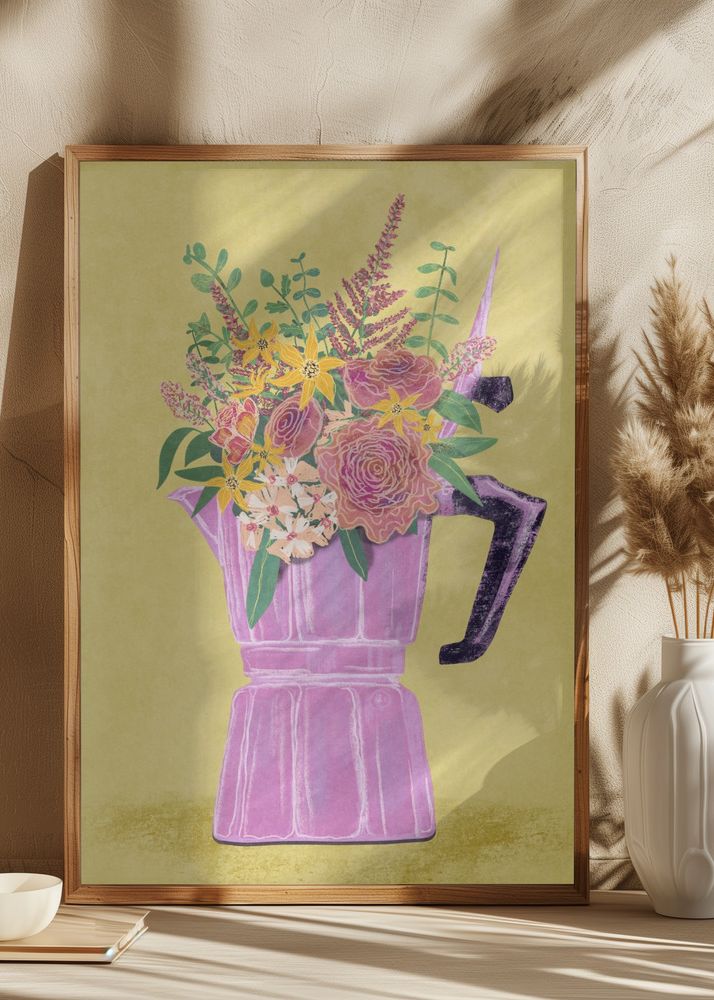 https://www.bgafotobutikk.no/Espresso-Maker-with-Flowers-Plakat-21x29_7-cm-A4