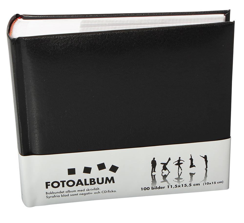 Stilrent fotoalbum med svarte permer i kunstlær med plass for 100 bilder i størrelser opptil 11x15 cm. Estancia Svart er innbundet for å ha den beste holdbarheten, og har syrefrie ark som gjør at bildene dine beholder sin originale kvalitet. Til hvert bilde er det god plass til egne notater, noe som gir et personlig preg.