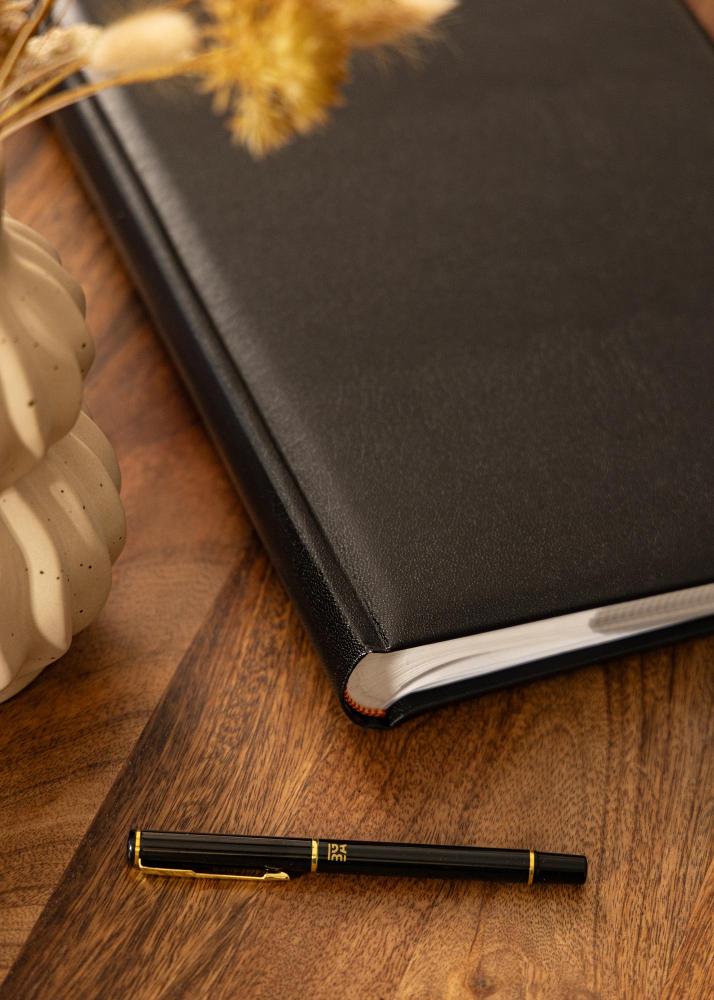 Stilrent fotoalbum med svarte permer i kunstlær med plass for 300 bilder i størrelser opptil 11x15 cm. Estancia Svart er innbundet for å ha den beste holdbarheten, og har syrefrie ark som gjør at bildene dine beholder sin originale kvalitet. Til hvert bilde er det god plass til egne notater, noe som gir et personlig preg.