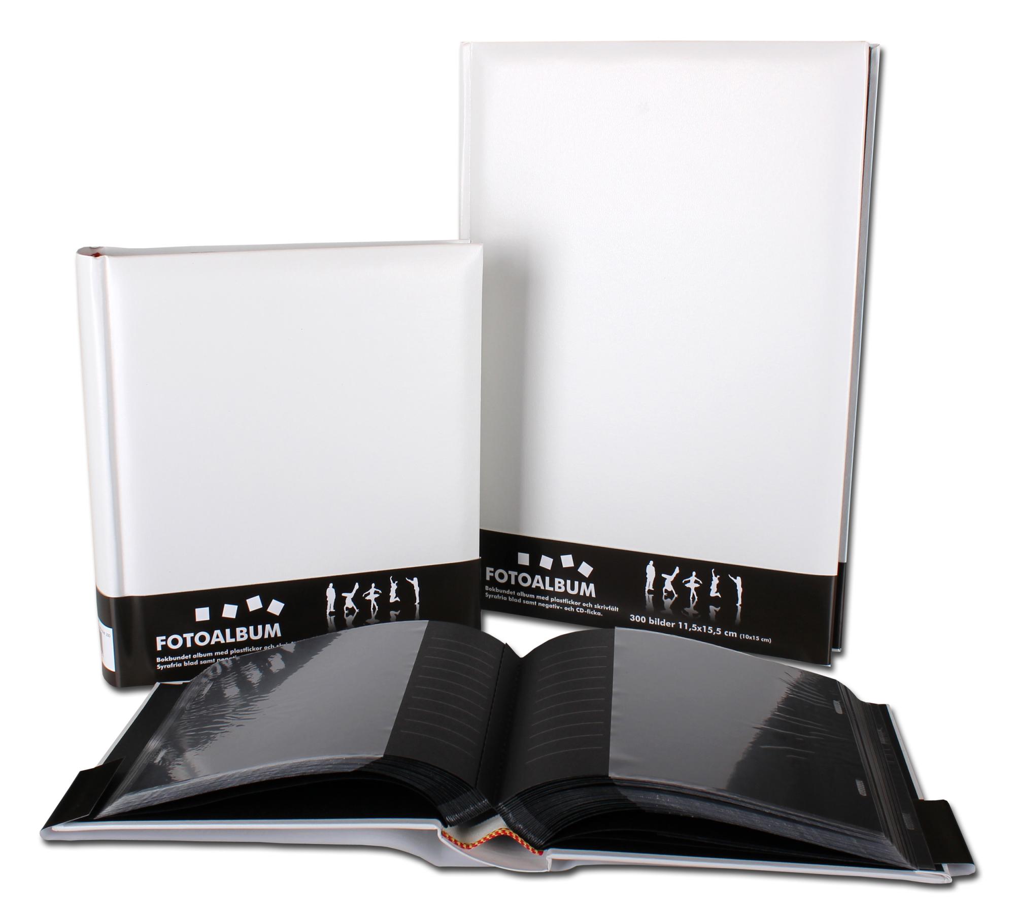 På triste dager kan du alltid dra frem dine gamle minner og muntre opp deg selv! Her har vi et fint og stilrent album som rommer hele 300 av dine verdifulle bilder! Albumet går i helt hvitt og er laget av kunstlær. Inni er det svarte, syrefrie ark med gjennomsiktige plastlommer. Under hver lomme er det et skrivefelt som du kan skrive noe morsomt på. Bruk gjerne en sterk metallicpenn for å forsikre deg om at teksten syns mot den svarte bakgrunnen..