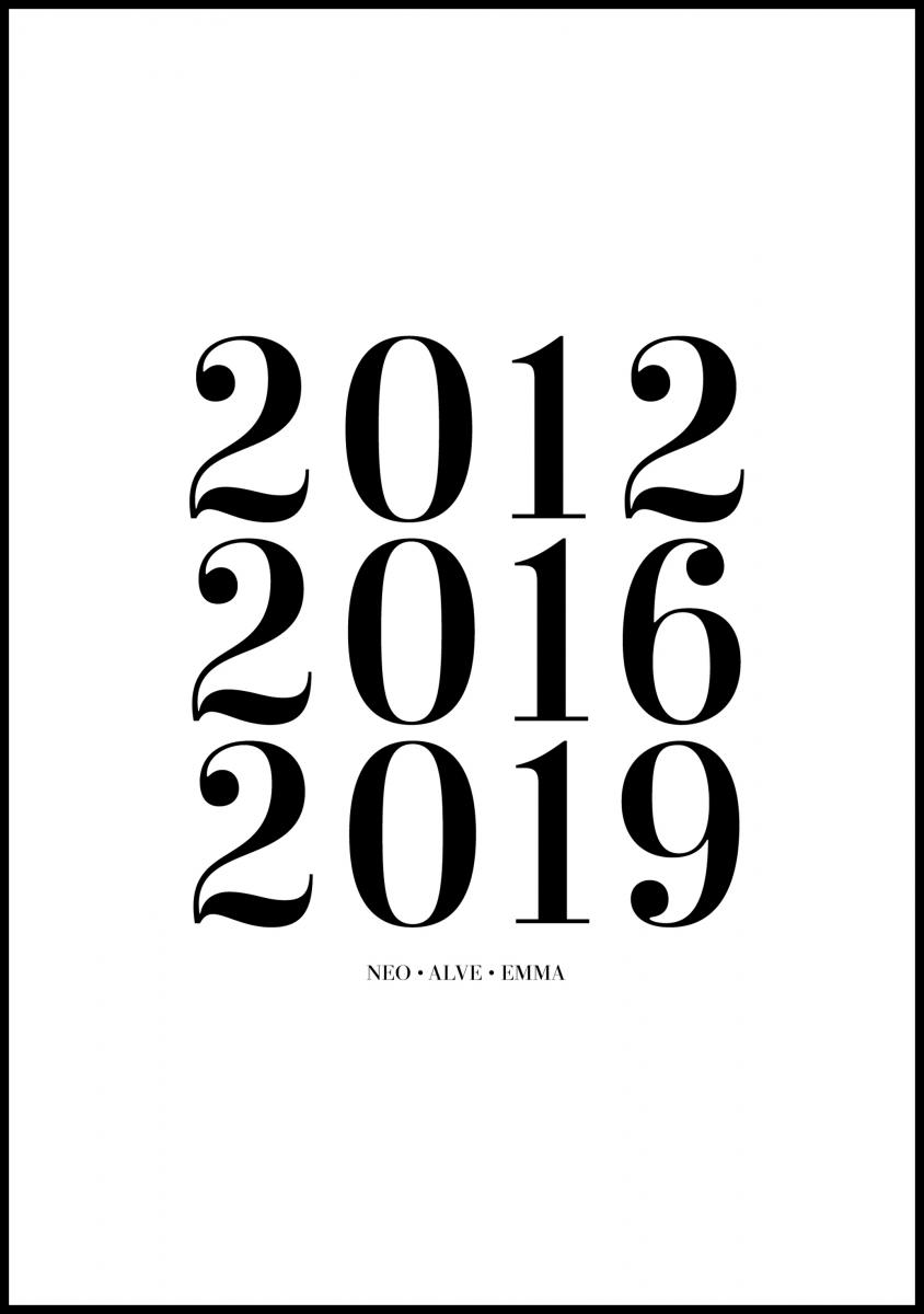 Familiebilde - 3 Fødselsår & Navn - Hvit (21x29,7 cm (A4))