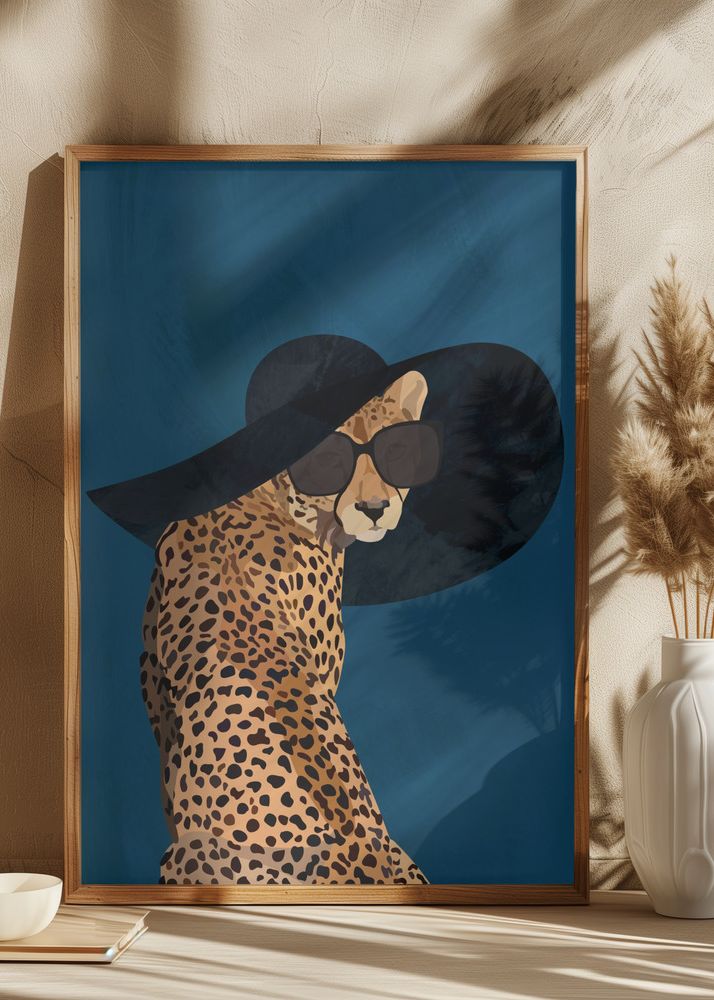 https://www.bgafotobutikk.no/Fashionable-Cheetah-wearing-a-sunhat-Plakat-21x29_7-cm-A4
