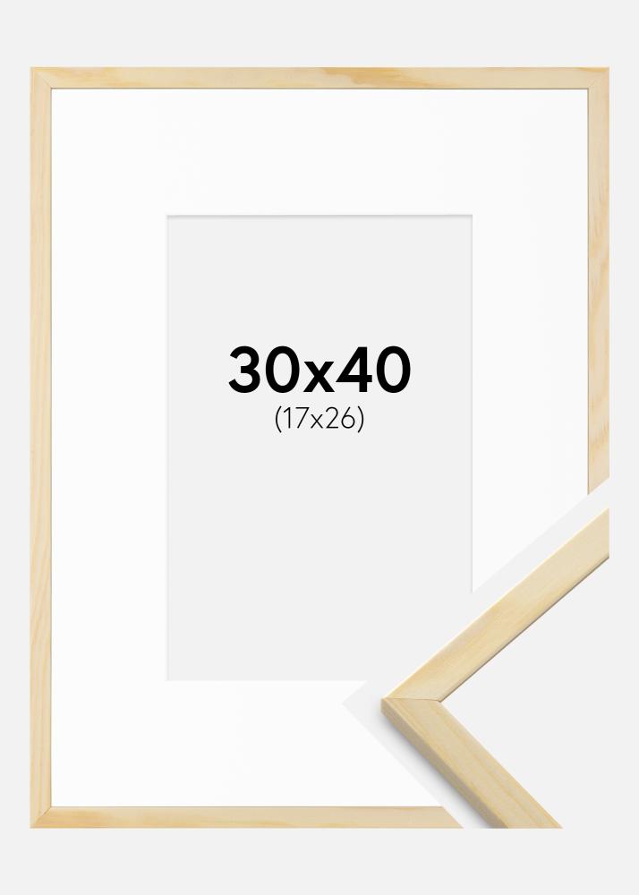 Ramme Galant Furu 30x40 cm - Passepartout Hvit 18x27 cm