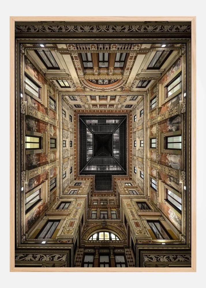 En innvendig plakat med Galleria Sciarra og dens fantastiske arkitektur. Tenk deg at du er i bygningen selv når du ser opp i taket og ser det fantastiske utvalget av vinduer og intrikate design. Ta med et stykke reise med deg i hjemmet ditt.