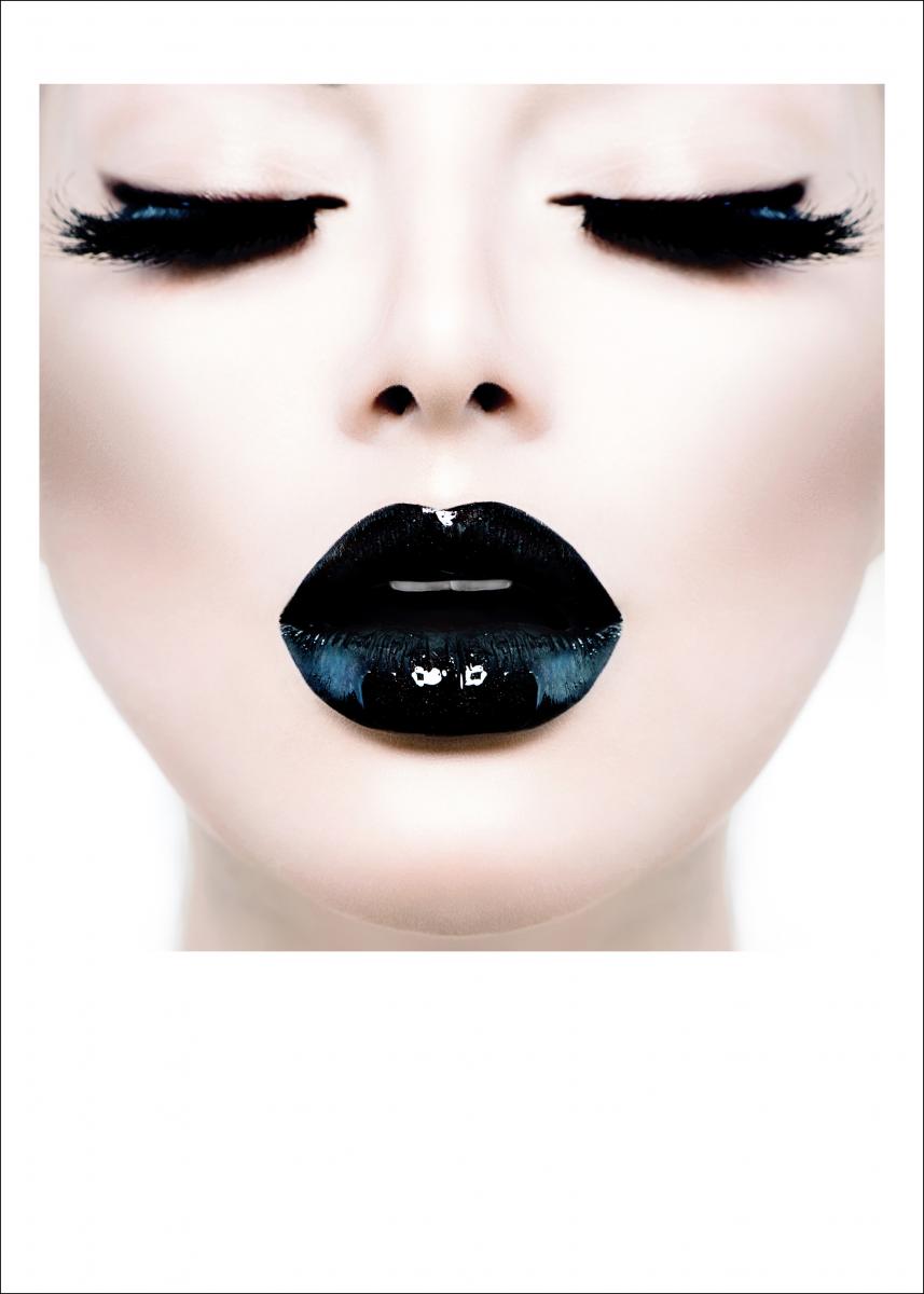 En herlig utpreget fotokunstposter under temaet mote! Her møtes svarte fyldige lepper og tykke svarte øyevipper en porselenhvit hud og en hvit bakgrunn. En stilren og kontrastfylt poster, lett å kombinere med andre favoritter på en større bildevegg.