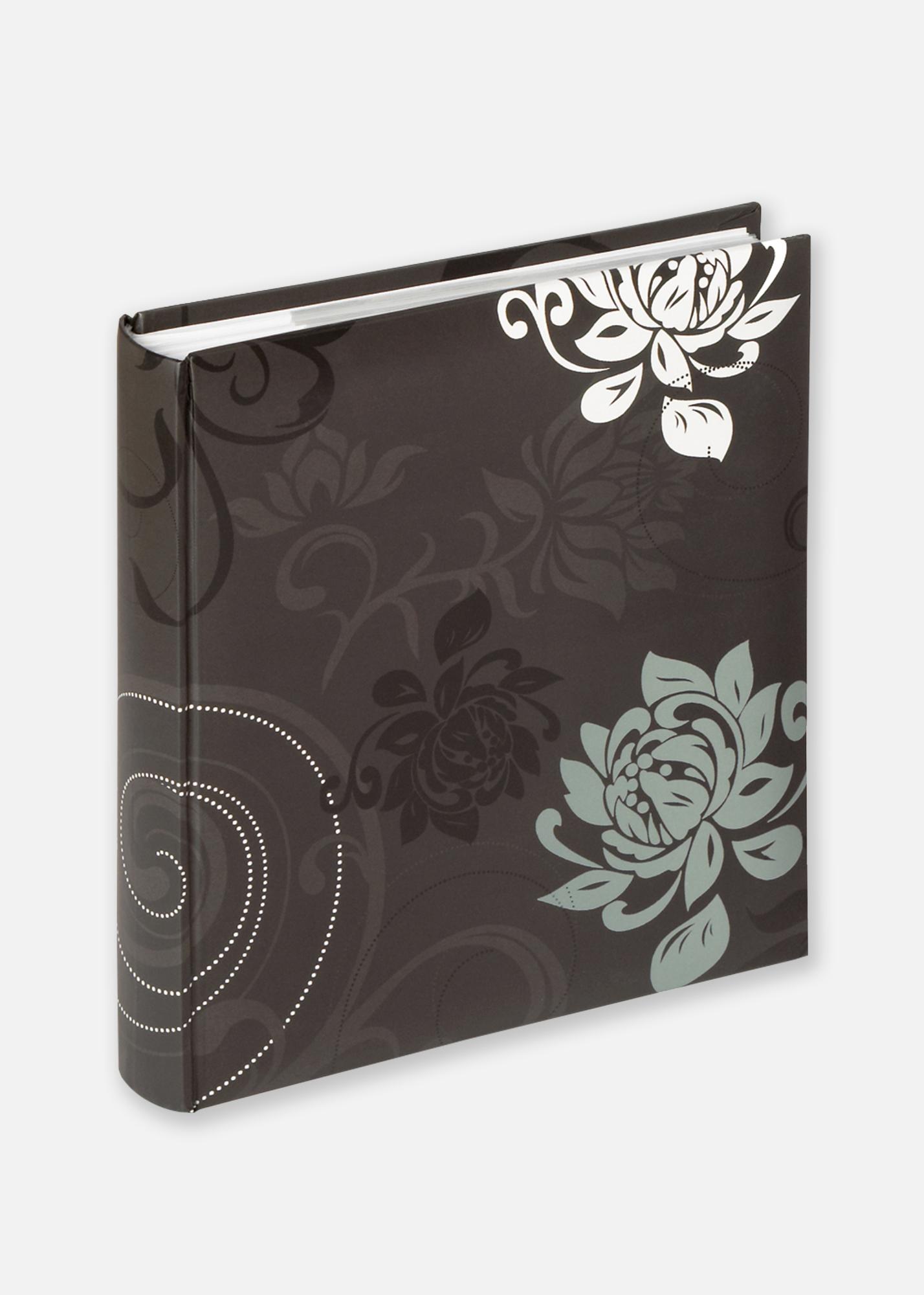 Liker du blomster og mønster? Da har vi et stilig fotoalbum som garanter kommer til å passe bra i din bokhylle! Dette albumet har en svart matt overflate med mønster, blomster og perlesnurrer i fargene svart, mintgrønn, grå og hvit. Inni finner du 200 plastlommer som du enkelt kan skyve dine bilder inn i. Inntill lommene finnes hvite linjerte skrivefelt der du kan skrive noe morsomt til hver bilde. Et fotoalbum med lommer passer utmerket for deg som vil organisere dine bilder kjapt og enkelt!