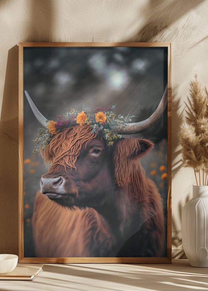 https://www.bgafotobutikk.no/Highland-Cow-With-Flowers-Plakat-70x100-cm