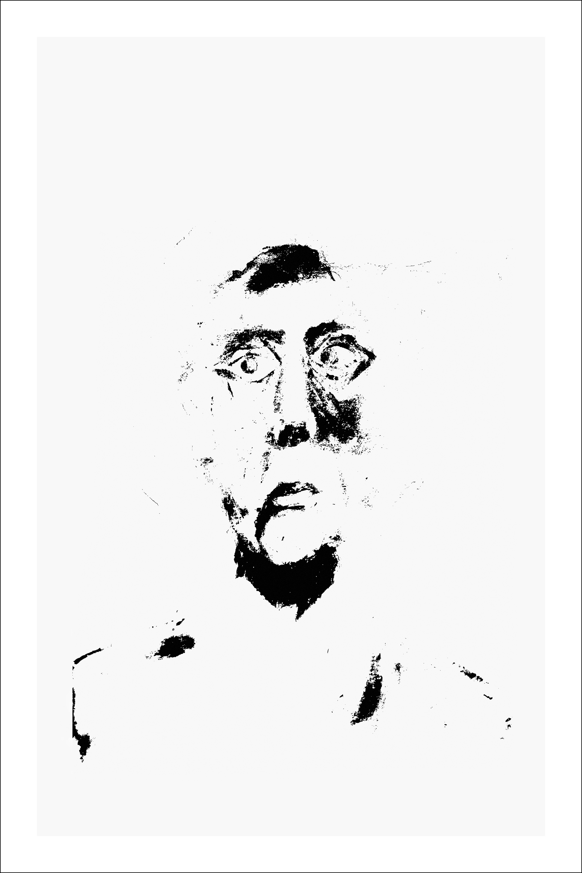 Et dystert portrett av et hode og skuldre i svart-hvitt. Satt mot et hvitt bakteppe, fremhever de mørke nyanser figurens hår, kinn og nakke. Figurens brede øyne uttrykker frykt og mystikk. En trist og dyster plakat som uttrykker frykt.