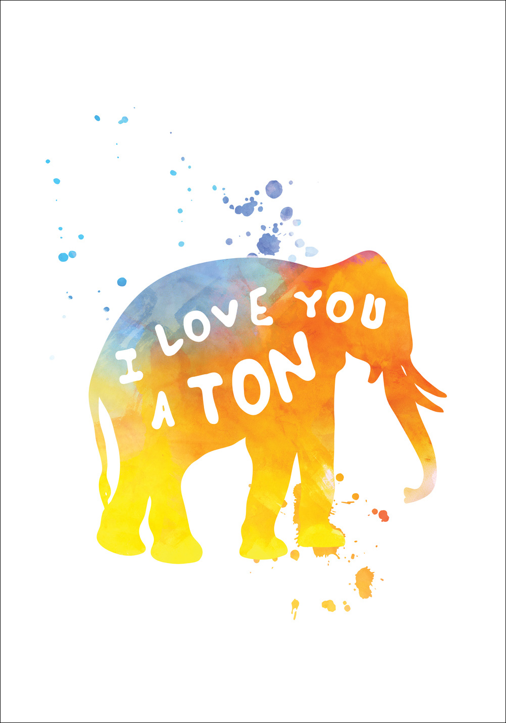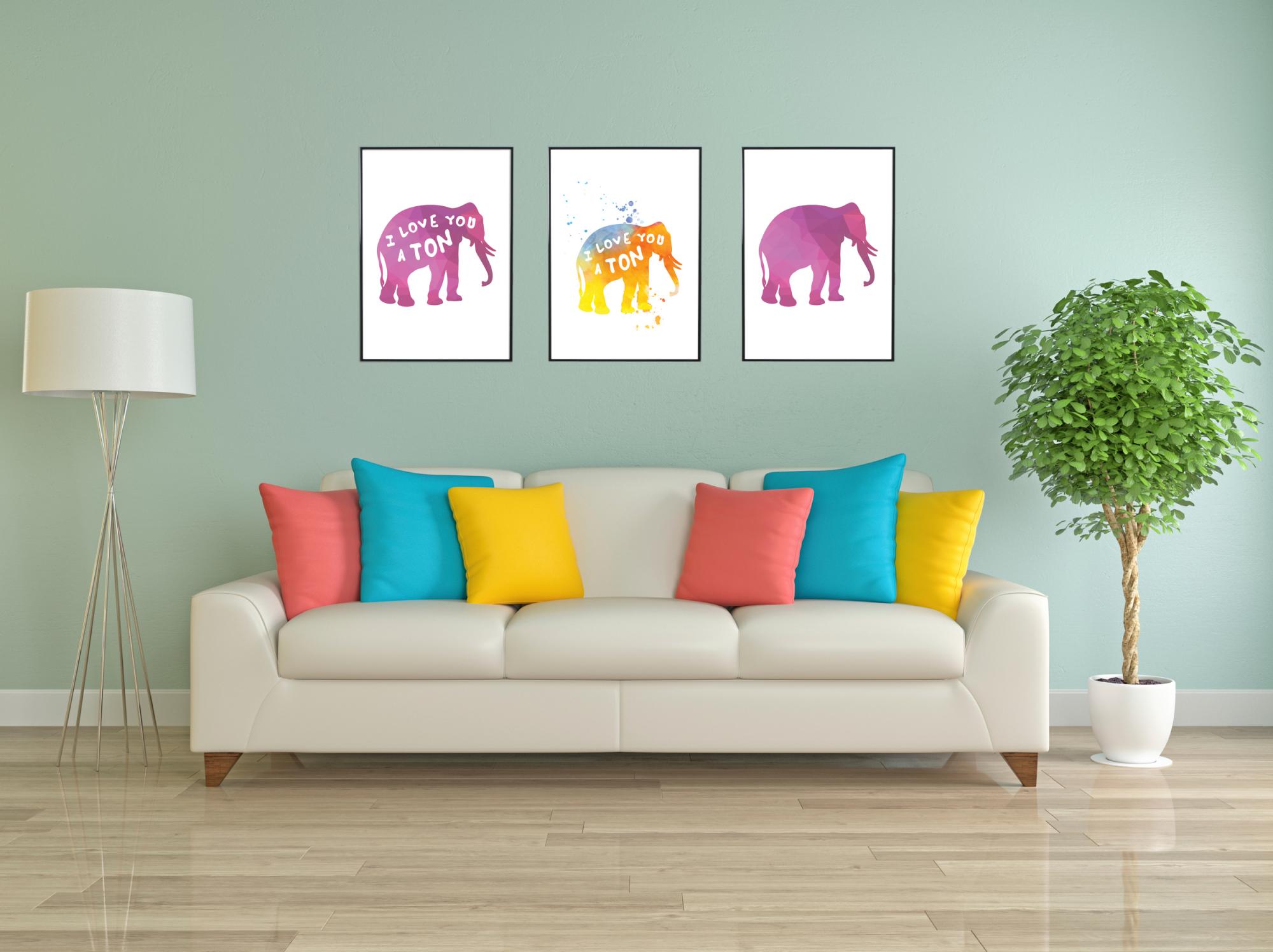 Kjærlighetsfull og morsom plakat som passer å gi til den som elsker elefanter og ønsker en fargeklatt på veggen. Elefanten ser ut til å være trykket med et overflød av farger på hvitt papir, med teksten i hvit skrifttype med en håndskrevet følelse. Posteren er fin å ramme inn med en stilren ensfarget ramme som fremhever nyansene i motivet og som gjør seg bra til den øvrige innredningen i rommet der bildet skal henges opp.