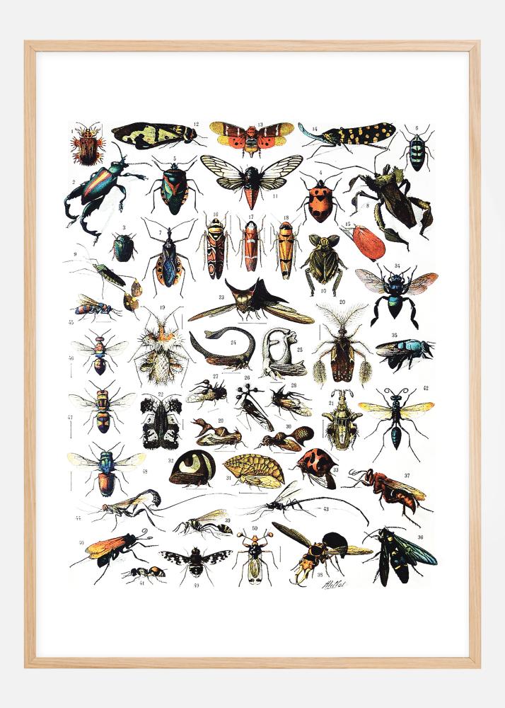 Tenk hvor mange fascinerende innsekter det finnes! Denne vakre skoleplansjen tilfører en herlig vintage-look til ditt hjem. Motivet er hentet fra en gammel bok om entomologi og den viser en stor gruppe fargerike innsekter. Kombiner gjerne plakaten med andre motiv fra naturen. Ettersom den finnes i flere ulike format finner du enkelt en som passer i akkurat ditt hjem.
