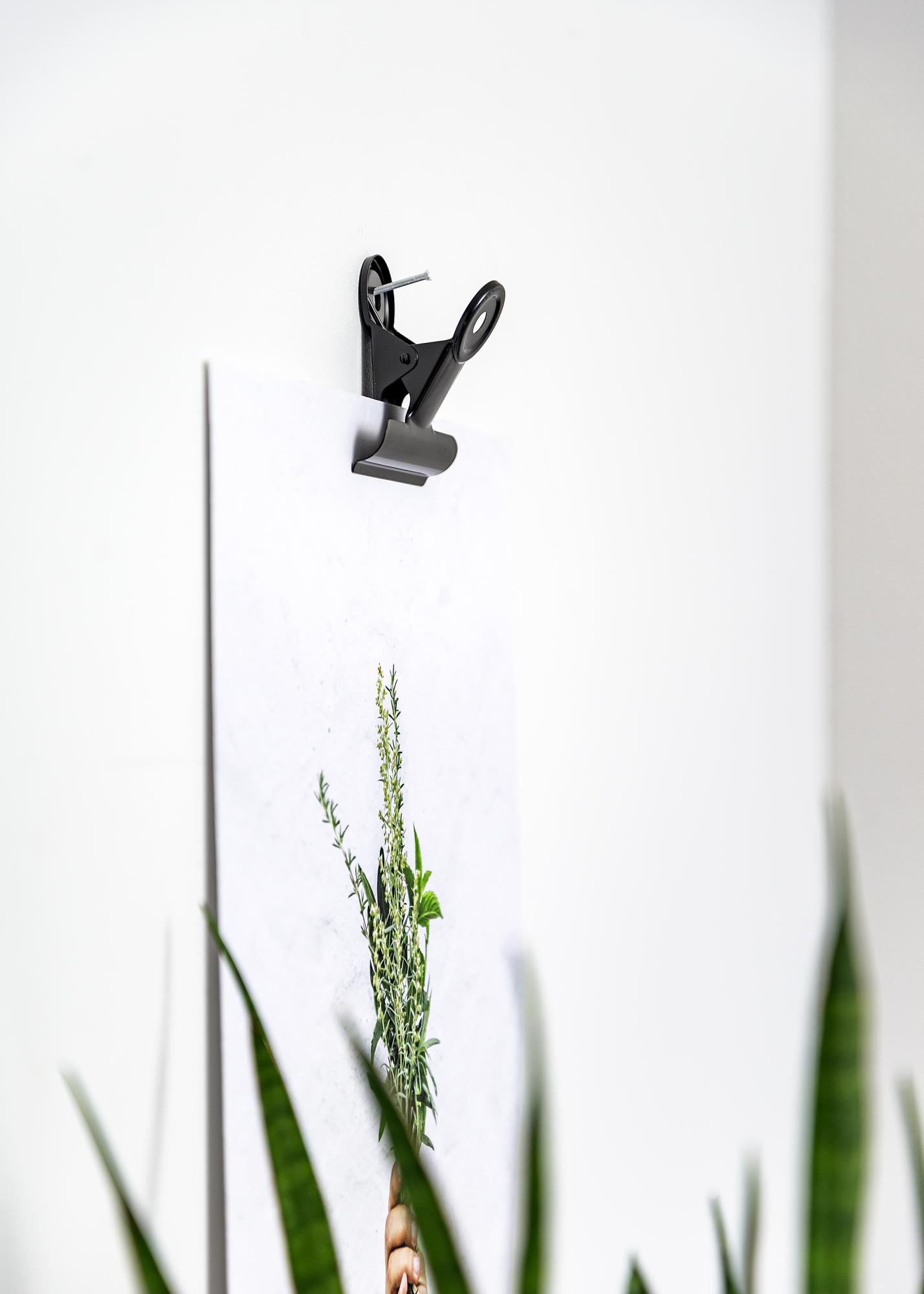 Denne svarte metallklypen har en fin matt finish og gir plakatene og printene dine en elegant og trendy oppheng. Åpningen til klypen har et reelt som lar deg feste tynt papir, mens det også er mulig å bruke det til motiver med litt større tykkelse. Hvis du har en stor plakat du vil henge opp så kan du bruke to plakatklyper. Metallklypene har et stilrent design, og hullene i den runde delen av toppen av klypen gjør det enkelt og lett å henge det opp på veggen med en liten spiker eller skrue.