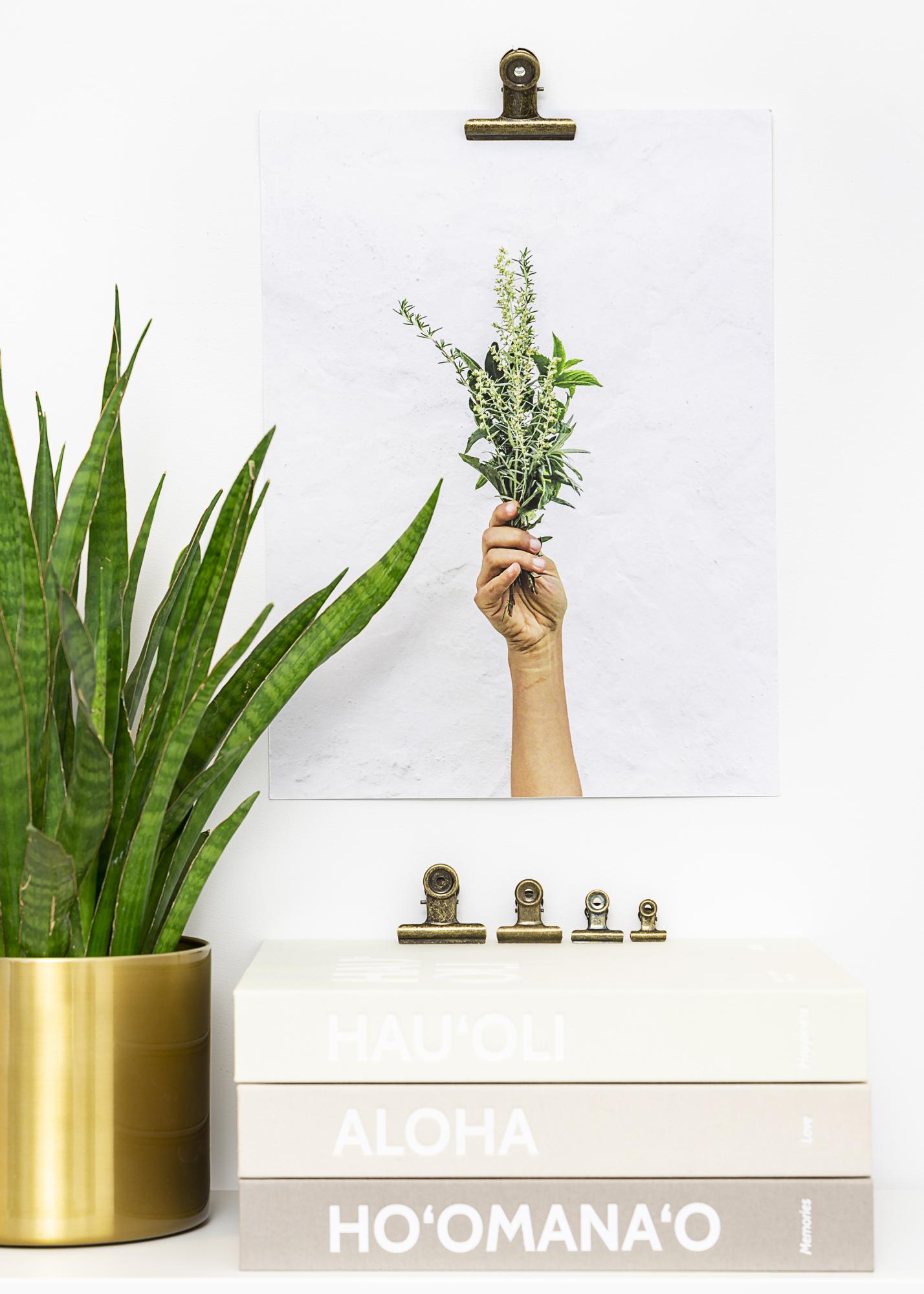 Denne stilige metallklypen gir deg en enkel og moderne måte å henge plakater og print på veggen, mens den vakre slitte bronsefargen også kan appellere til deg som liker interiørdetaljer i rustikk stil. Åpningen i klypen har et reelt, men fleksibelt grep som lar deg feste både supertynt papir poster med litt tykkere tykkelse. Har du en plakat i litt større format som du vil henge opp, kan du bruke to metallklyper. Det er enkelt å montere på veggen takket være hullene i plakatklypens stilfulle runde topp