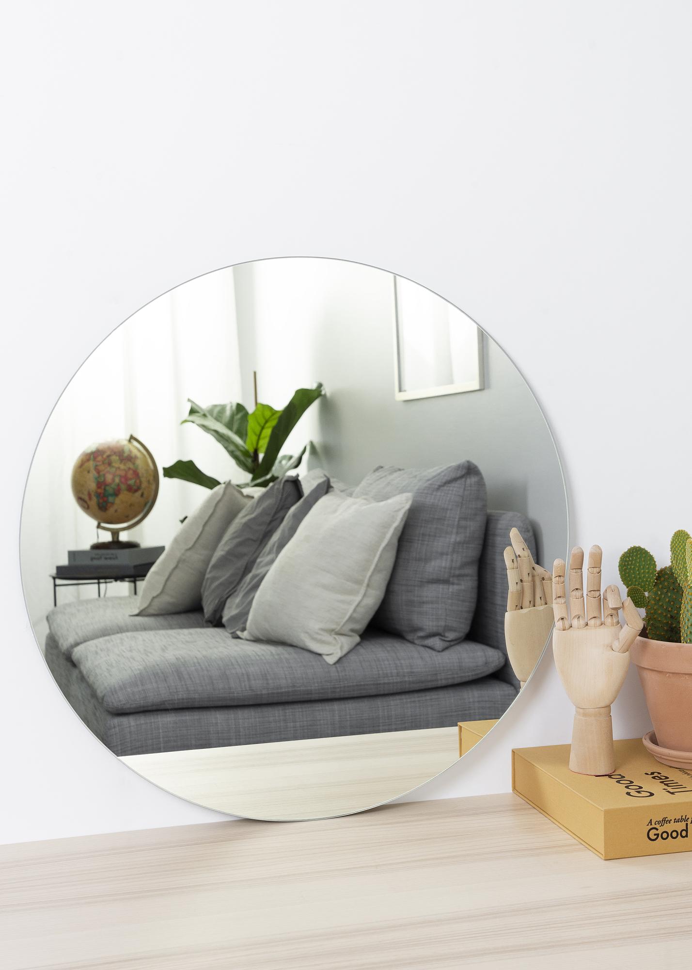 65 cm Ø rundt speil som inngår i en serie med runde speil fra KAILA. Finnes i hele 13 størrelser, slik at du finner den størrelsen som passer perfekt for deg. Speilet er veldig tynt, stilrent, og passer i alle typer rom og til alle innredningsstiler.