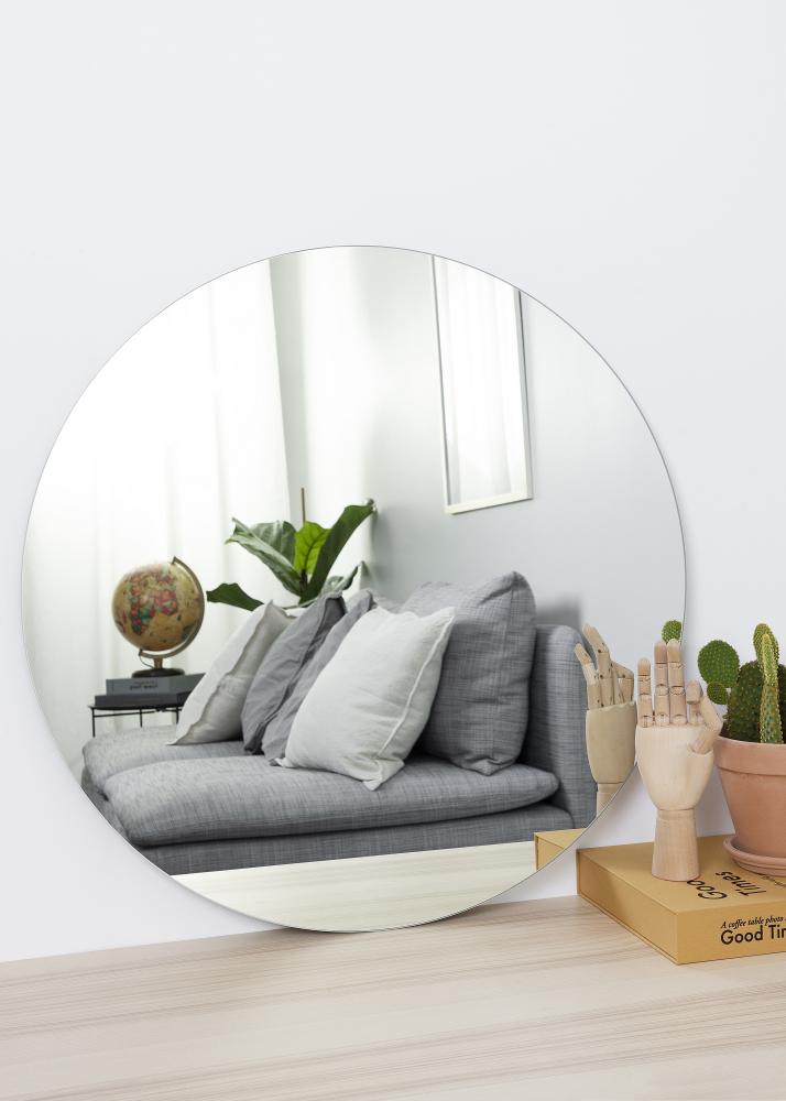 70 cm Ø rundt speil som inngår i en serie med runde speil fra KAILA. Finnes i hele 13 størrelser, slik at du finner den størrelsen som passer perfekt for deg. Speilet er veldig tynt, stilrent, og passer i alle typer rom og til alle innredningsstiler.