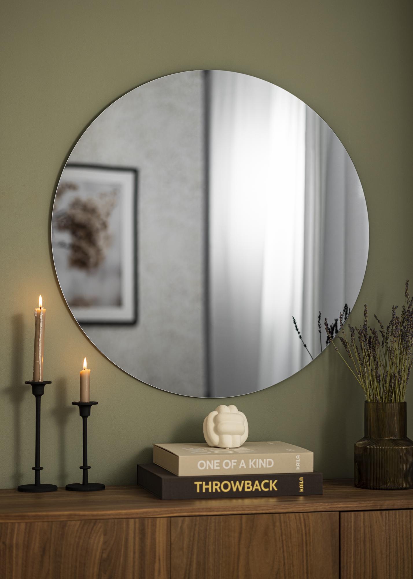 Et rundt speil med et stilig gråtonet speilglass som blir en moderne interiørdetalj i hjemmet ditt! Dette speilet er dessuten veldig tynt og har et minimalistisk design uten ramme, noe som gjør det veldig elegant og enda mer moderne.