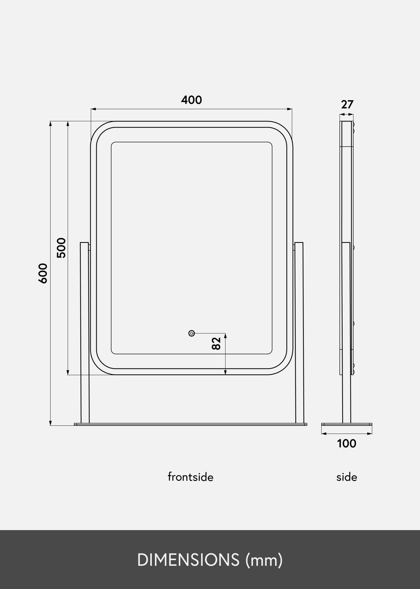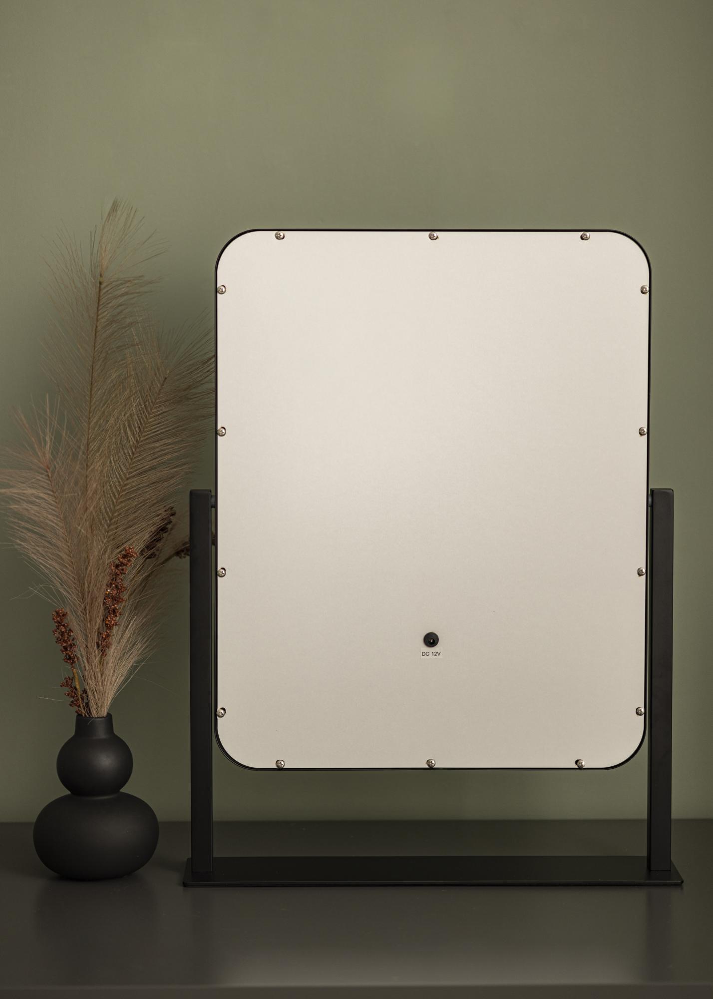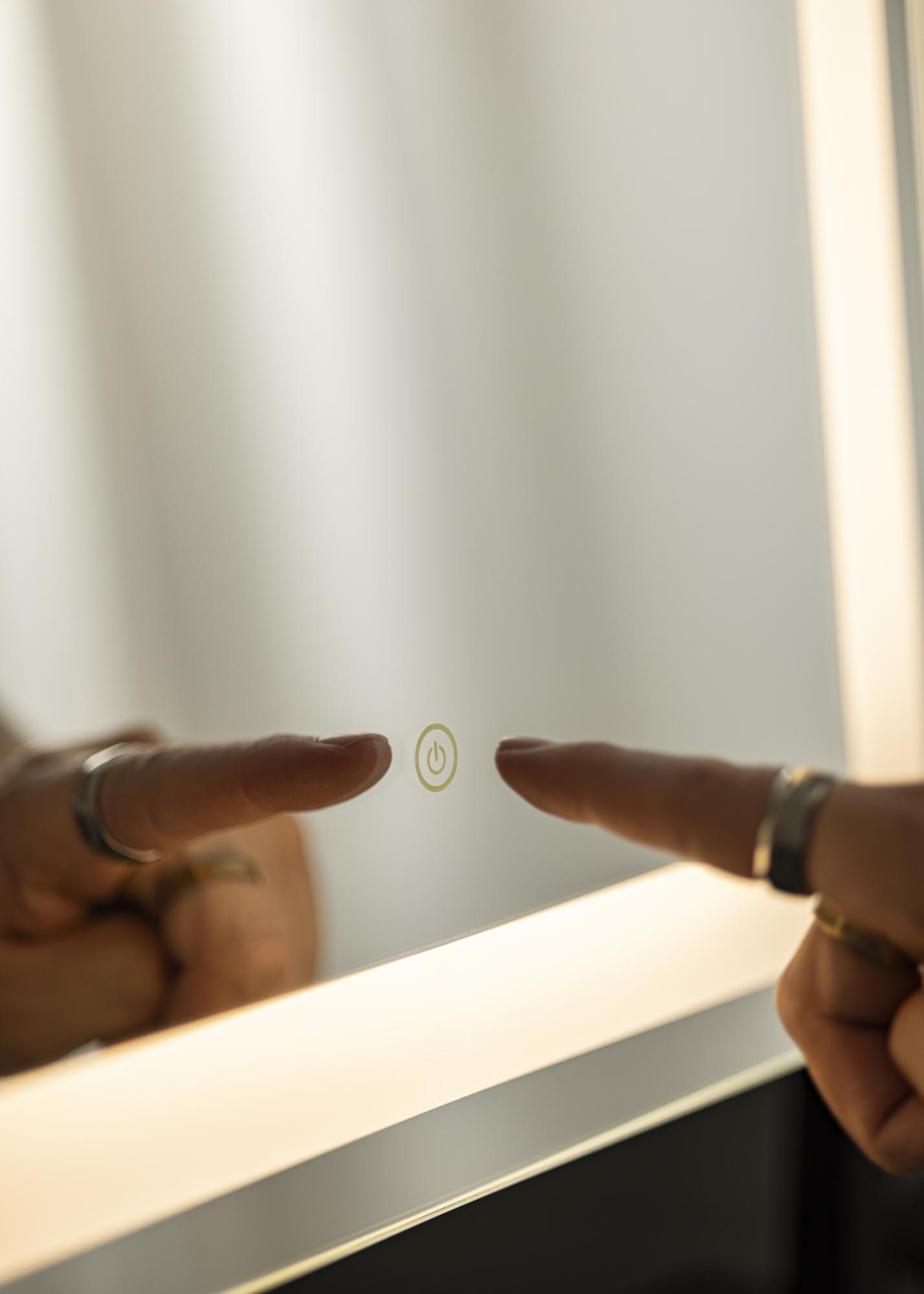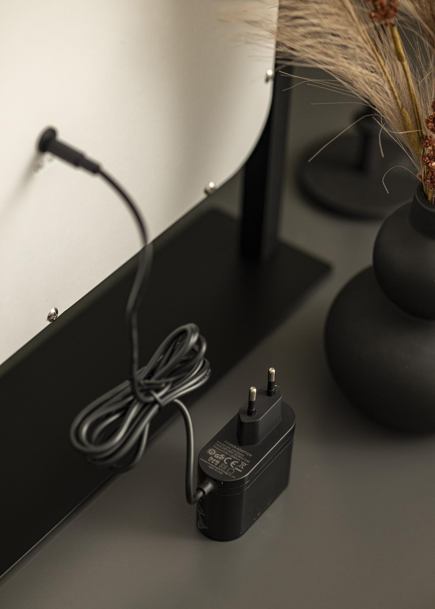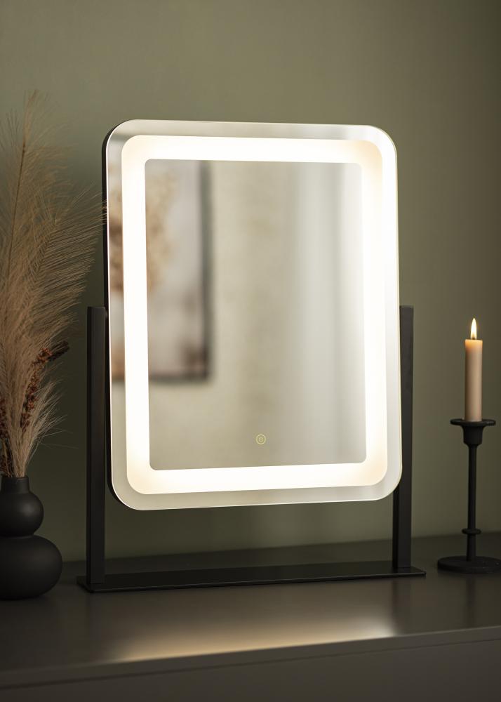 Et sminkespeil for deg som liker trendy design! Dette speilet i svensk design fra KAILA går i en trendy svart nyanse og har en frostet kant med integrert LED-belysning rundt speilglasset. LED-belysningen gir en varm hvit glød i 3000K, som er perfekt når du bruker sminke. Du kan enkelt slå på belysningen ved å trykke på berøringsknappen på skjermen og justere lysstyrken ved å holde knappen nede i noen sekunder. Sminkespeilet måler 45x60 cm og kan vinkles slik at du enkelt kan speile deg fra forskjellige vinkler!