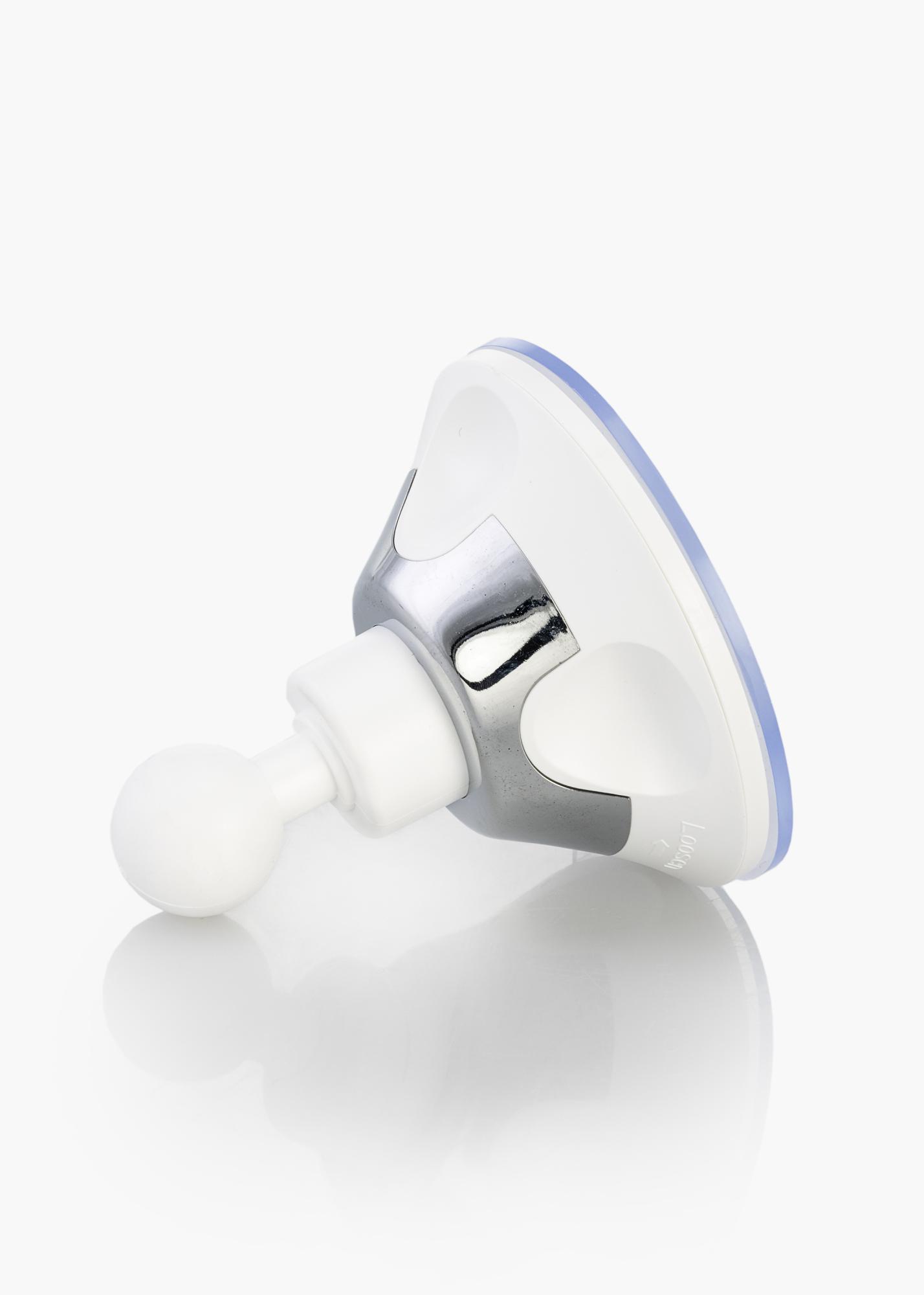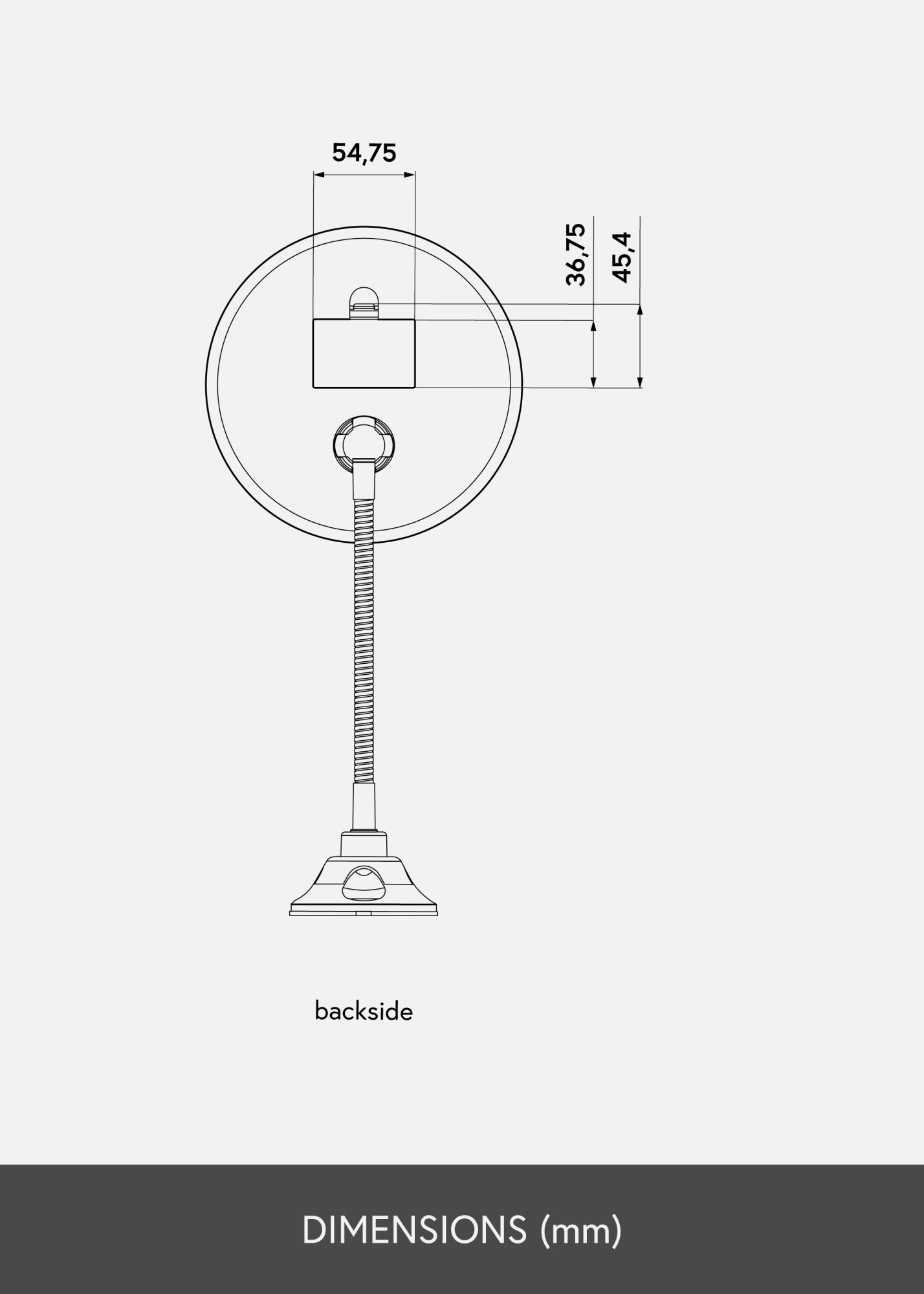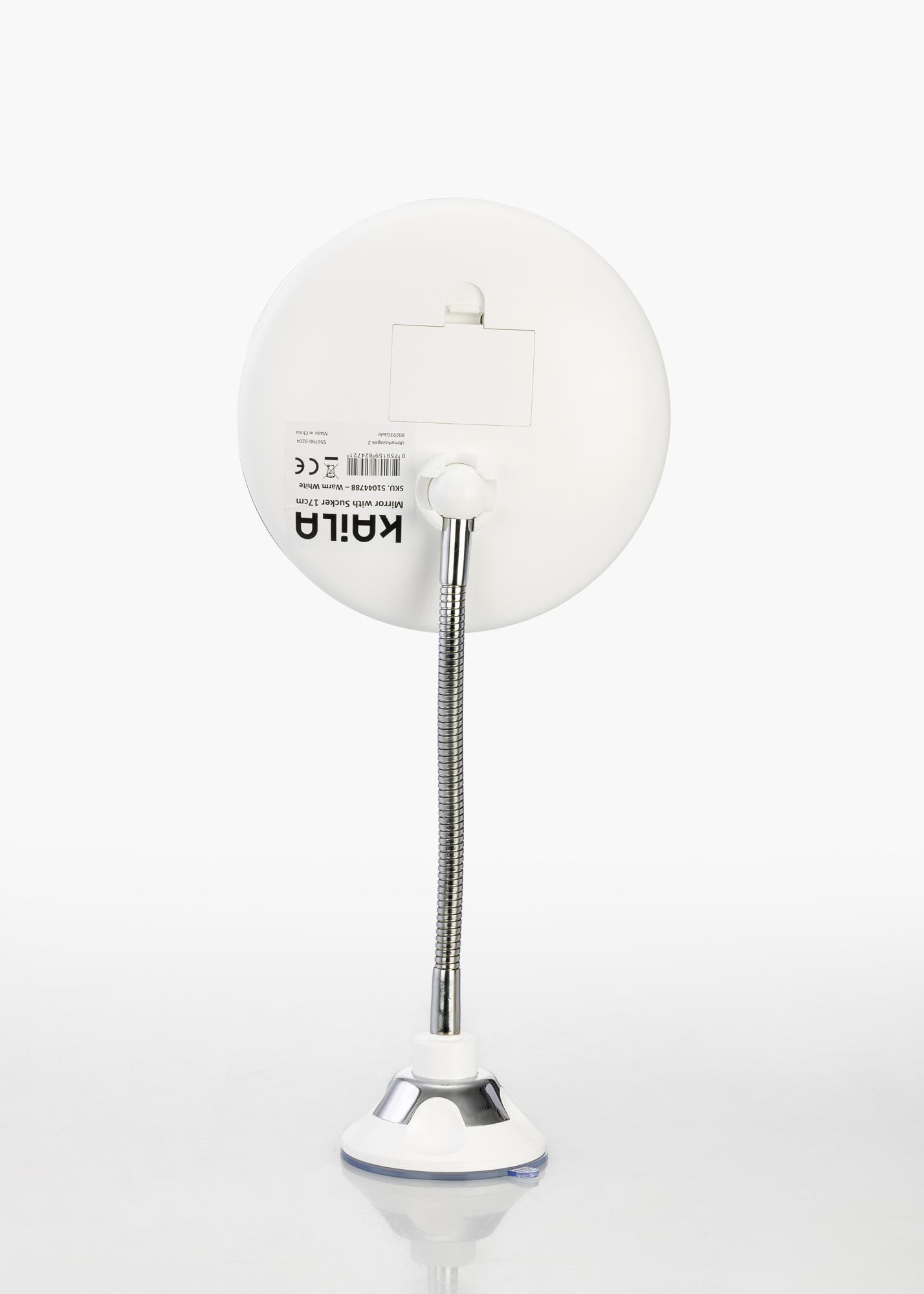 Den tilhørende foten av speilet er bevegelig, noe som betyr at du kan bøye speilet i den vinkelen du ønsker. Speilet er godkjent for bad. Speilet er festet til veggen, flisen eller bordet med tilhørende sugeplugg. Sugepluggen er låsbar og sørger for at speilet er stabilt. Levert umontert.