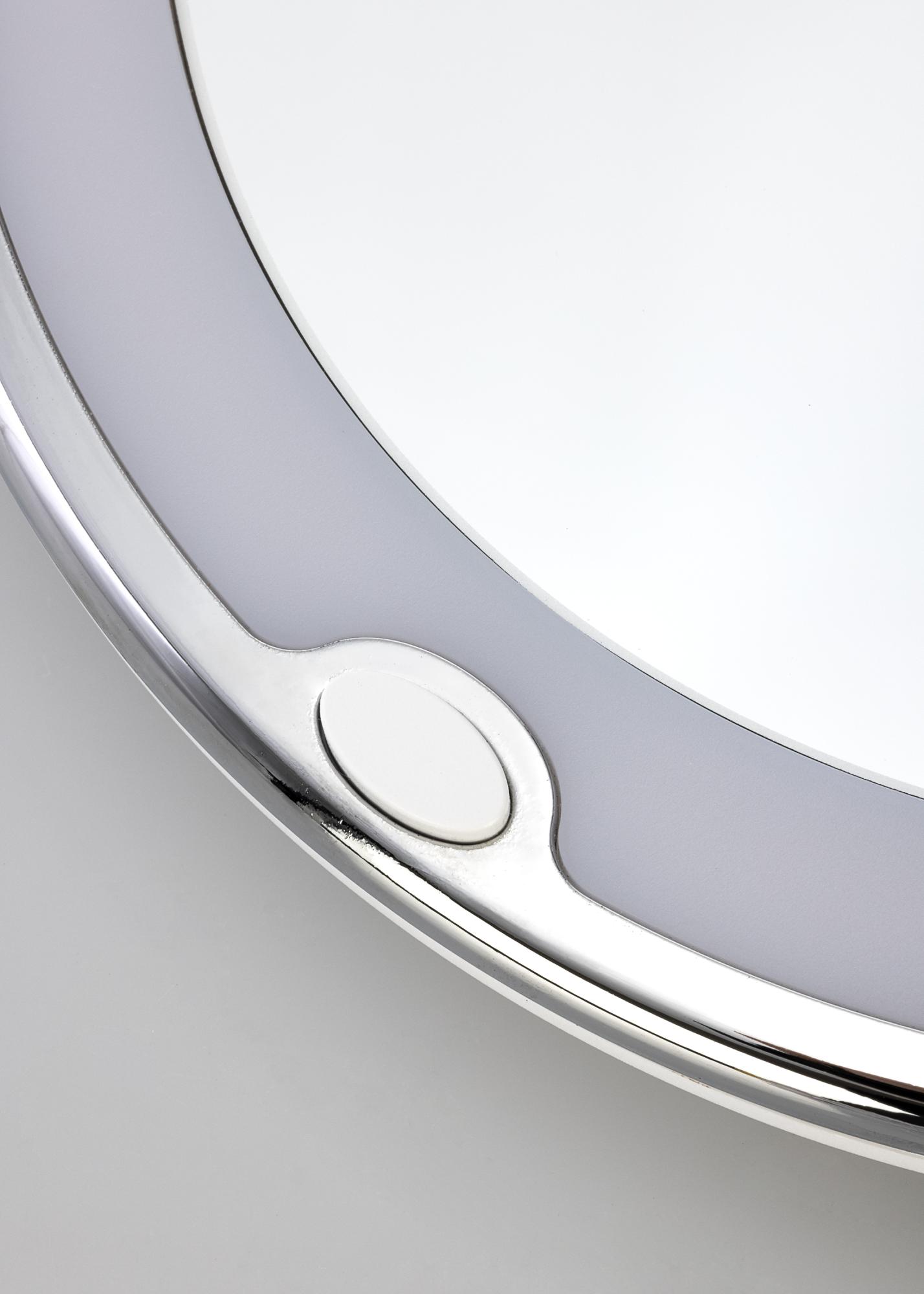Dette er et klassisk og elegant baderomsspeil med integrert LED-belysning fra det svenske merket KAILA. Dette speilet er perfekt for å kunne se alle detaljene ettersom det har et forstørrelsesglass i 5x zoom som gir et skarpt nærbilde. LED-belysningen gir en varm hvit glød i 3000K rundt speiloverflaten som måler 17 cm i diameter.