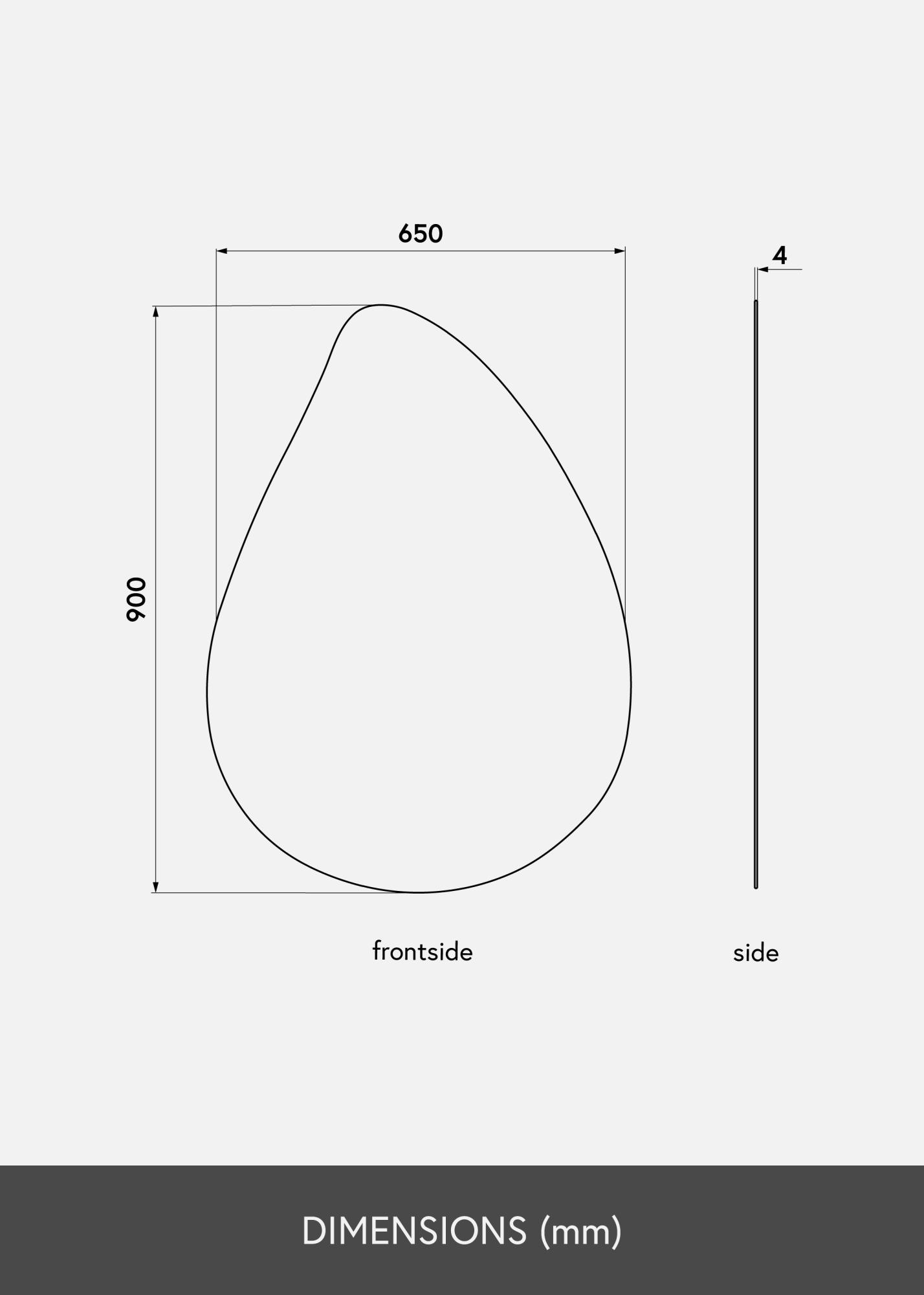 Plasser det elegante speilet der det kommer til sin dekorative og funksjonelle nytte, som for eksempel i gangen, på soverommet eller i stuen. Dette dråpeformede speilet er tilgjengelig i flere størrelser, hvorav denne varianten har en størrelse på 65x90 cm.