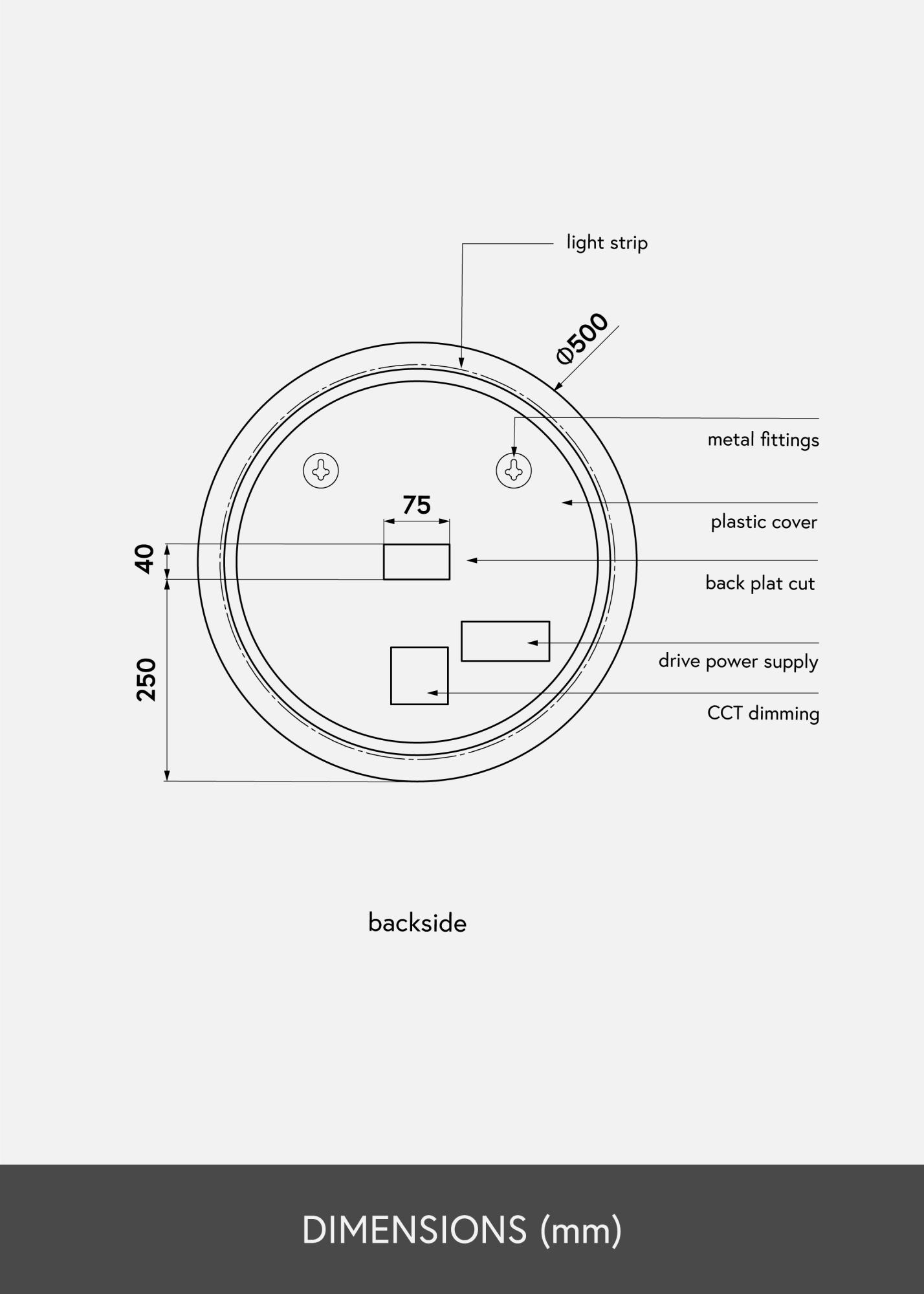 Dette er et klassisk baderomsspeil i rund form i svensk design fra KAILA. Badespeilet har integrert dimbar LED-belysning rundt som lyser opp bak og gir et fint varmt hvitt lys fremover i 3000K. Belysningen slås på ved å trykke på den vanntette berøringsknappen på skjermen, og du kan enkelt justere lysstyrken på belysningen ved å holde knappen i noen sekunder. LED er en energieffektiv lyskilde som gir jevnt og naturlig lys.