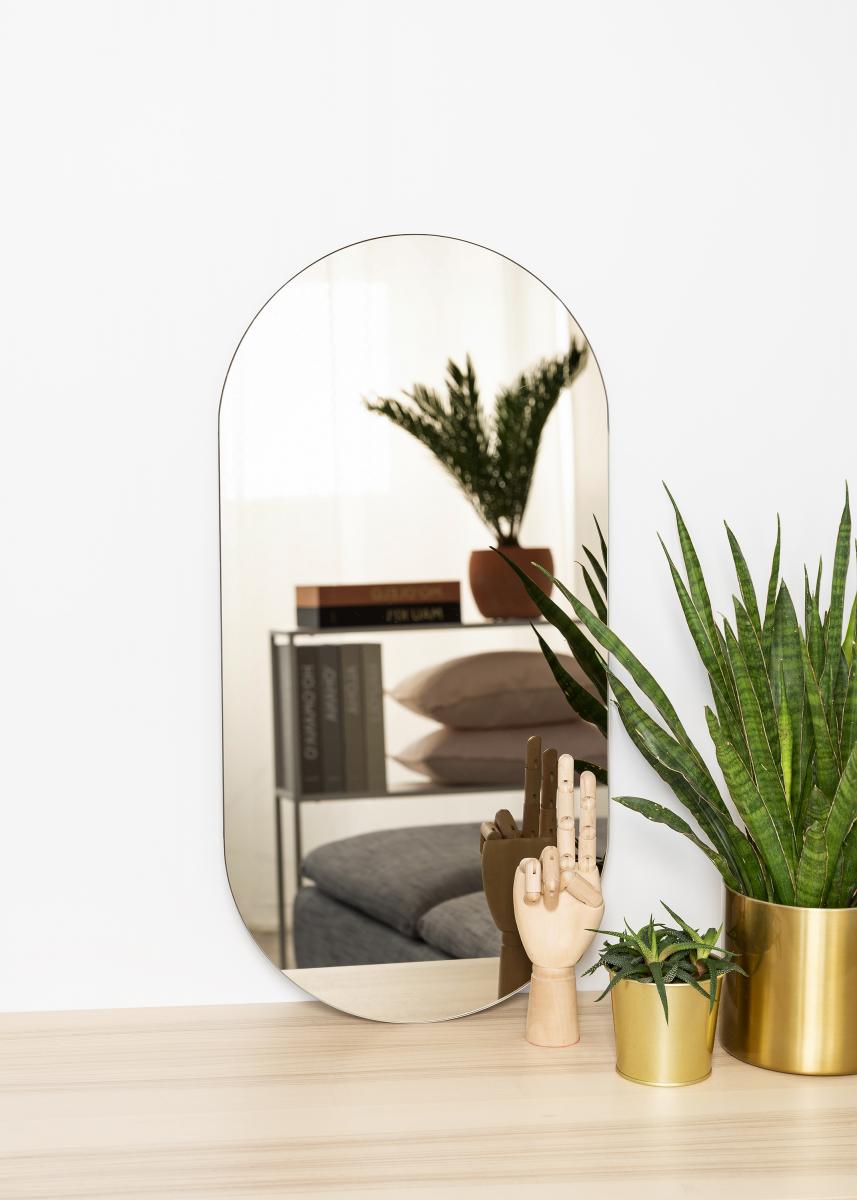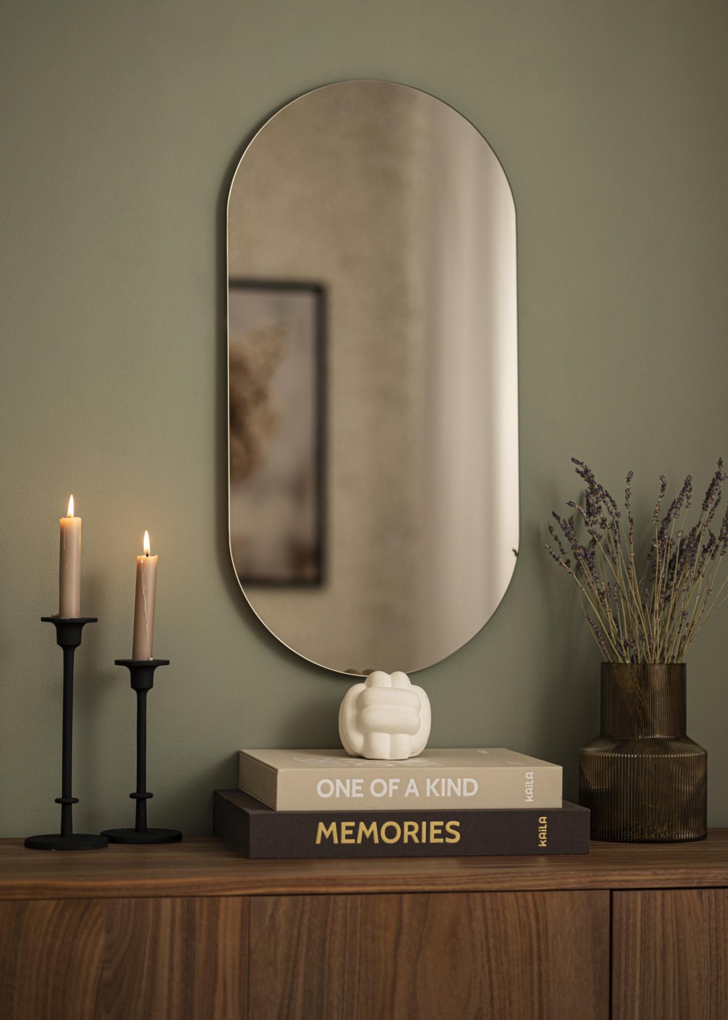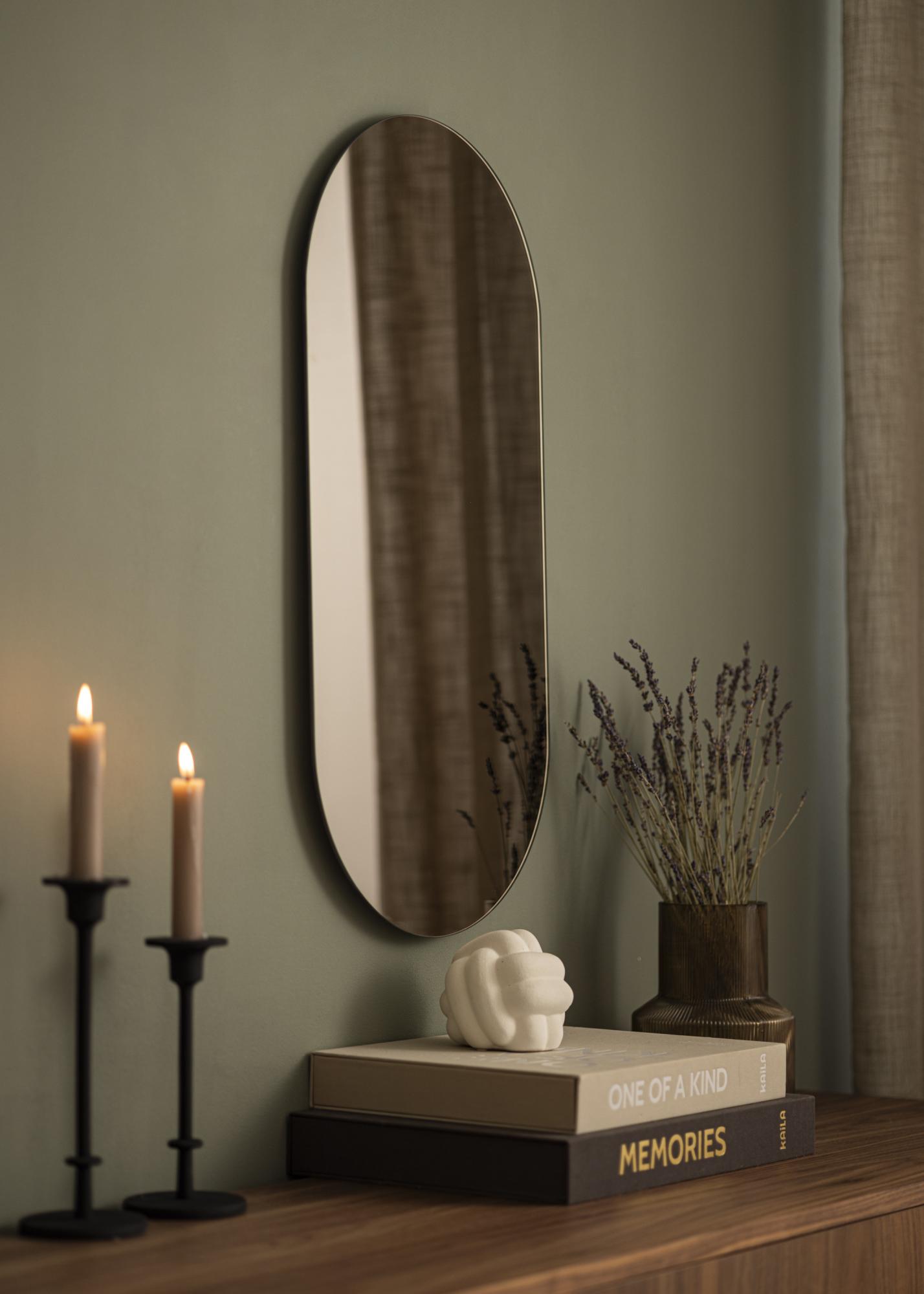 Et ovalt speil skaper et mykt og elegant inntrykk i hjemmet ditt. Akkurat dette ovale speilet har i tillegg et speilglass farget i en stilig mørk bronsefarge. Denne effektfulle og trendy detaljen kombineres med et flott design ettersom speilet er veldig tynt og ikke utstyrt med en ramme. Resultatet blir en iøynefallende, moderne og elegant interiørdetalj som kan plasseres i hvilket som helst rom der du vil tilføre funksjon og trendy svensk design!