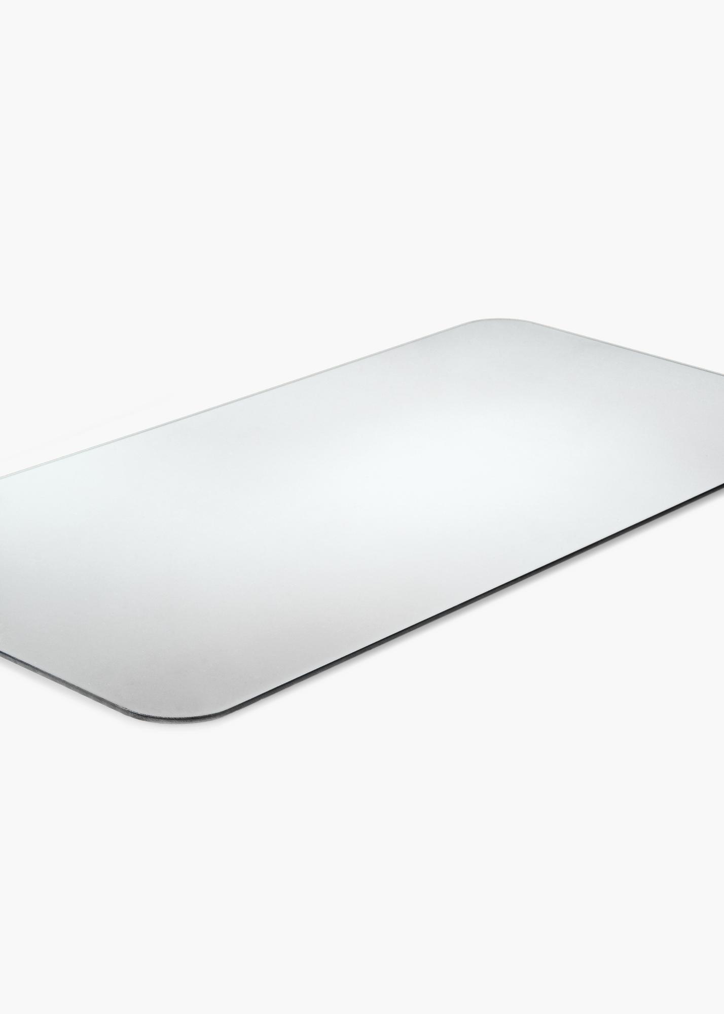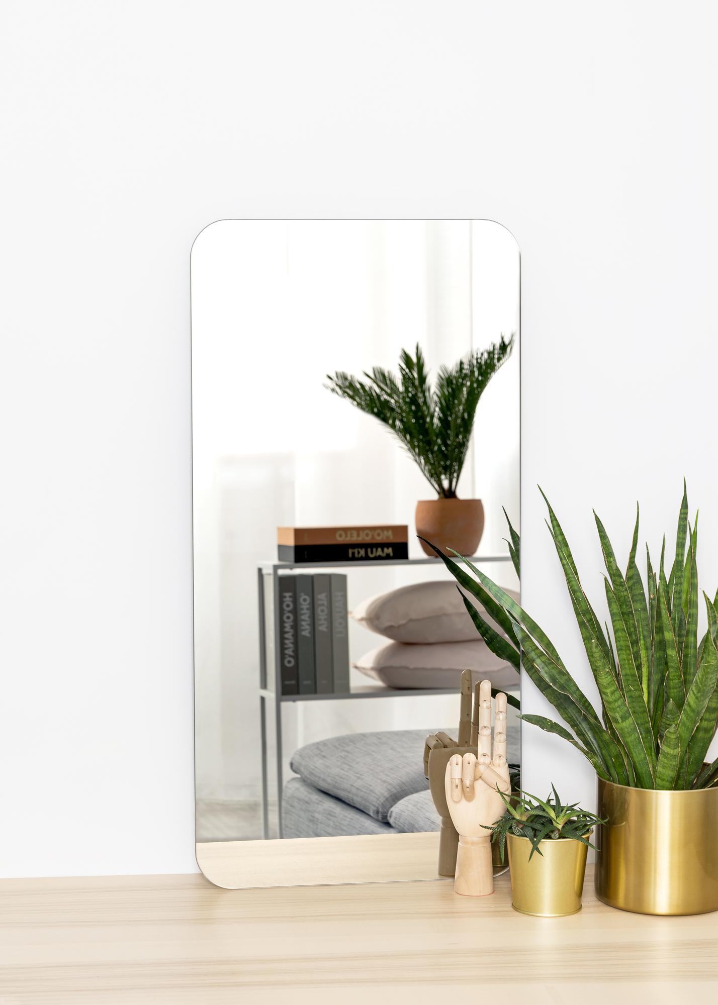 Dette er et rektangulært speil med det lille ekstra: Avrundede hjørner som tilfører både mykhet og eleganse til helheten. Speilet er dessuten veldig tynt og mangler ramme, noe som gir det en minimalistisk følelse.