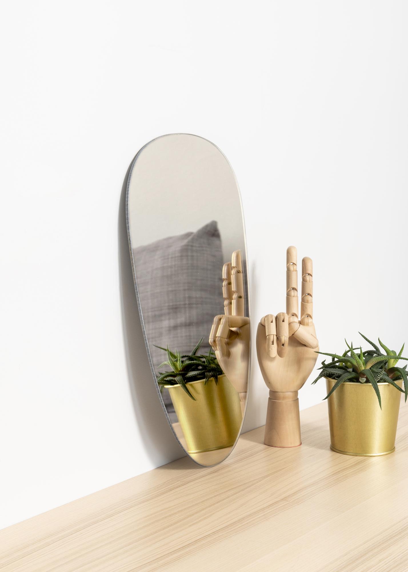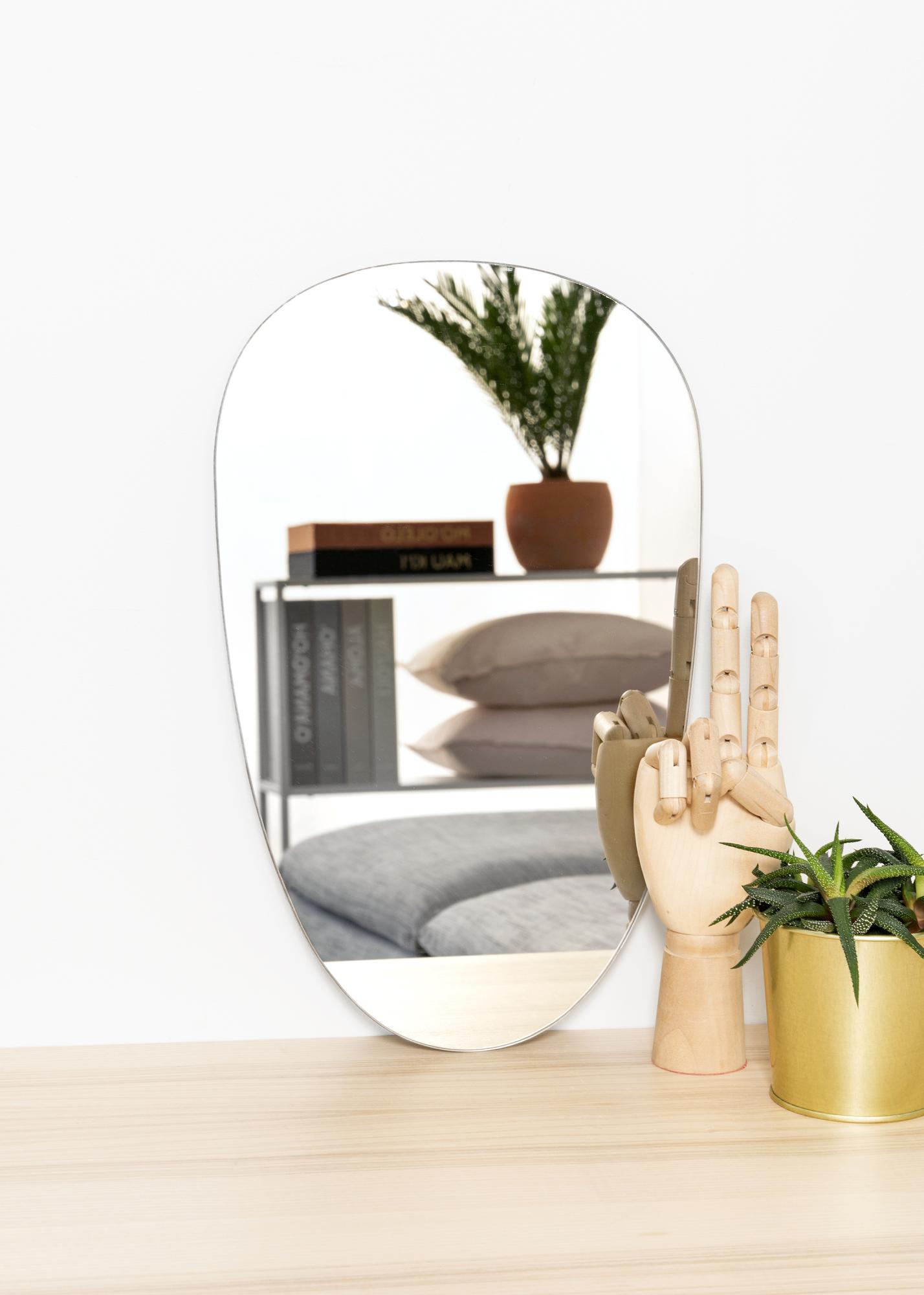 Et speil med en spennende og litt uvanlig form som skaper et moderne inntrykk i hjemmet ditt! Det asymmetriske speilet er i tillegg bare 4 mm tynt og uten ramme, noe som gir det en veldig lekker og elegant stil.