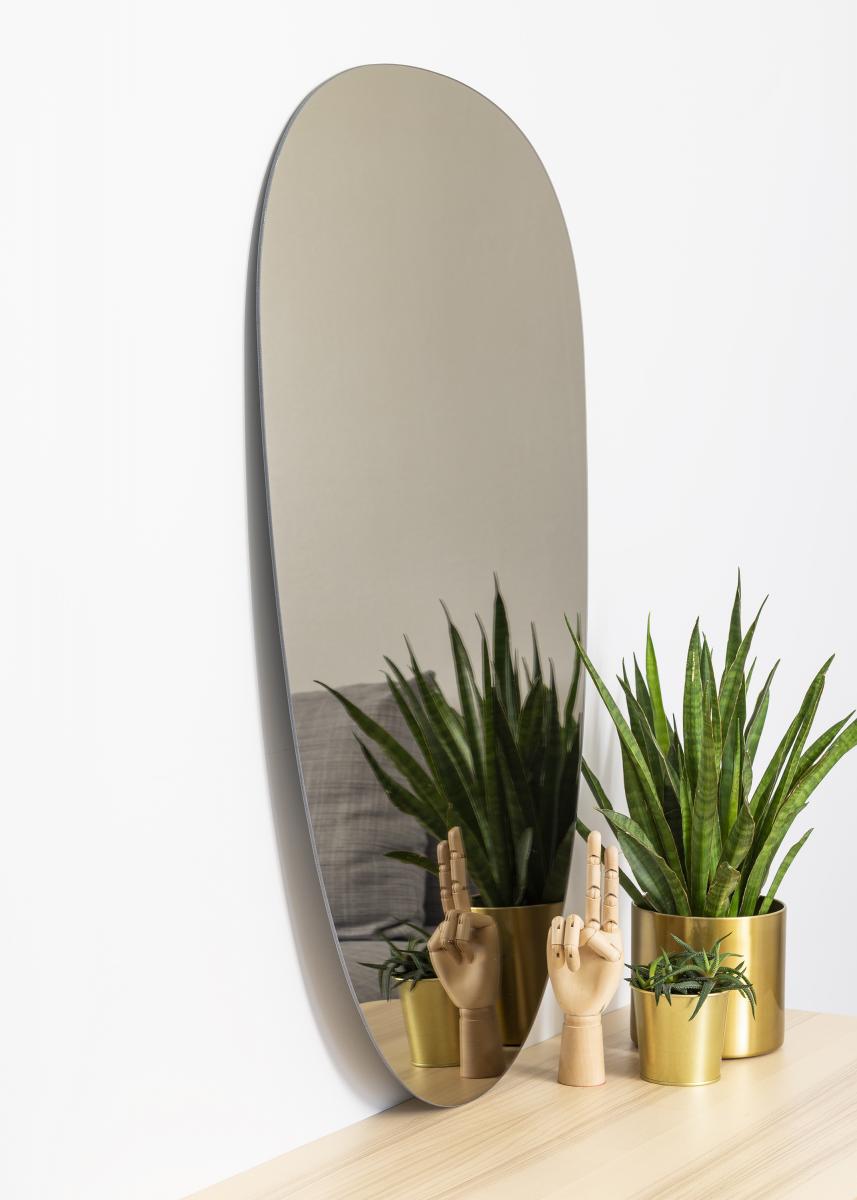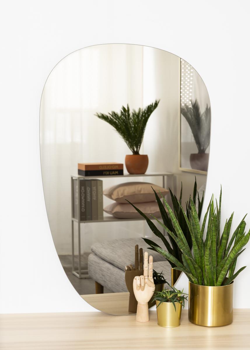 Dette er et asymmetrisk speil med myke former og et svært elegant og trendy utseende. Speilglasset er farget i en stilig mørkebrun bronsefarge, noe som gjør det til en effektfull interiørdetalj som enkelt kan matches med mange andre interiørfarger. Speilet er også veldig tynt og har ingen ramme, noe som forsterker den stilige og trendy følelsen ytterligere. Plasser speilet i gangen, stuen, på soverommet - eller i hvilket som helst rom hvor du vil tilføre funksjon og elegant svensk design!
