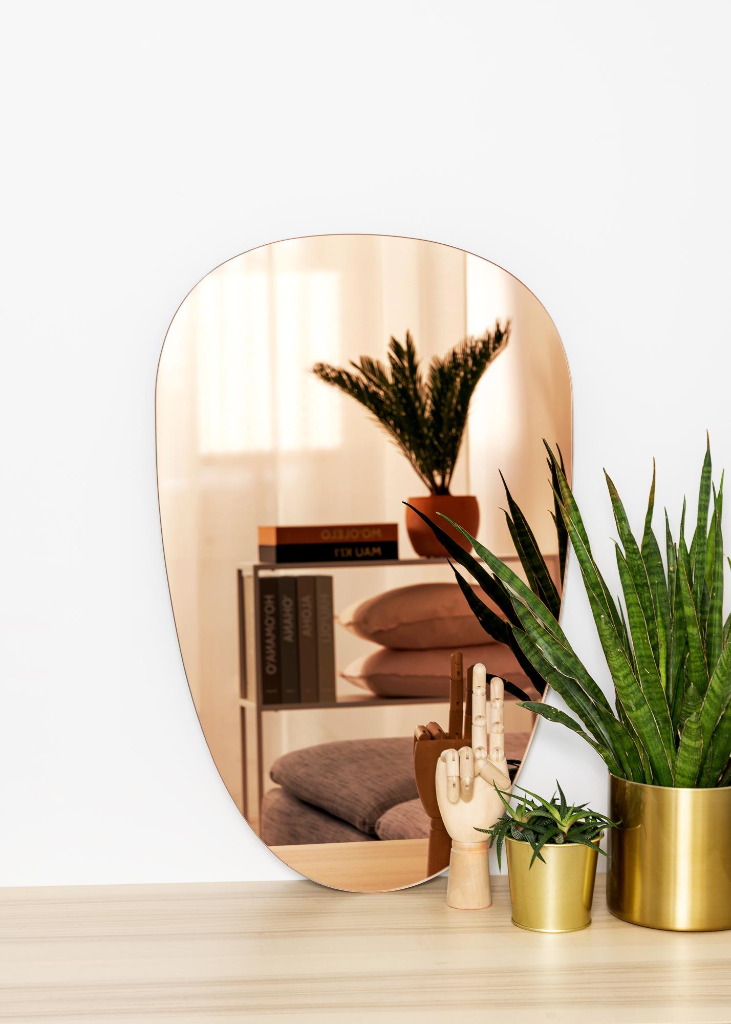 Tilfør interiøret ditt funksjon og et stykke stilrent svensk design! Med dette speilet - og dets myke og elegante form - skaper du en innbydende og lett følelse i hjemmet ditt. Speilet er asymmetrisk ovalt, veldig tynt og ikke utstyrt med ramme, noe som bidrar til den flotte og stilrene fremtoningen. Speilet har i tillegg et roségullfarget speilglass, noe som gjør det til en veldig trendy interiørdetalj i hjemmet ditt.