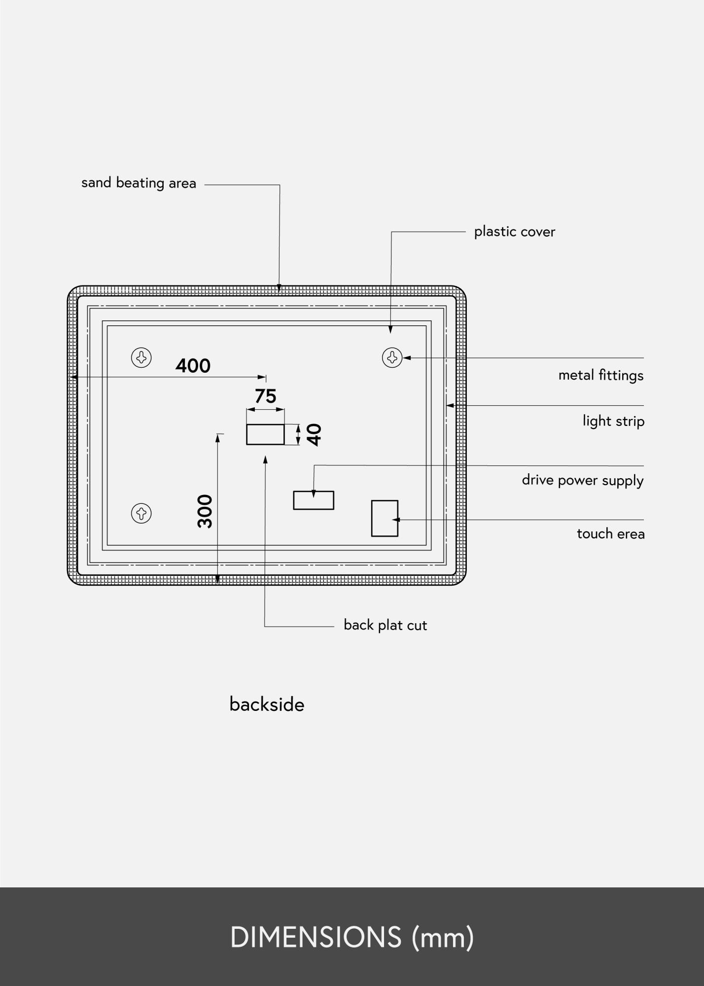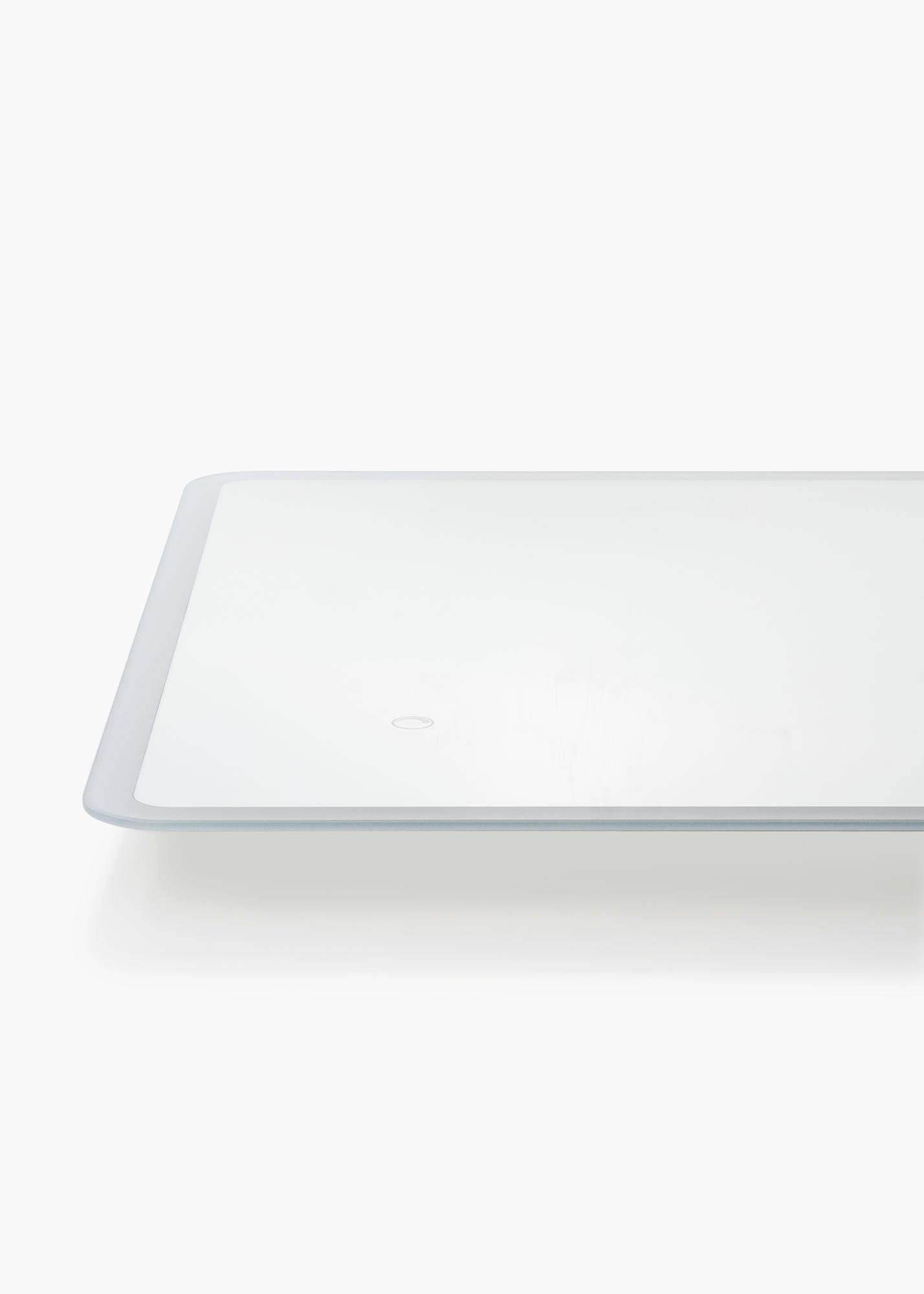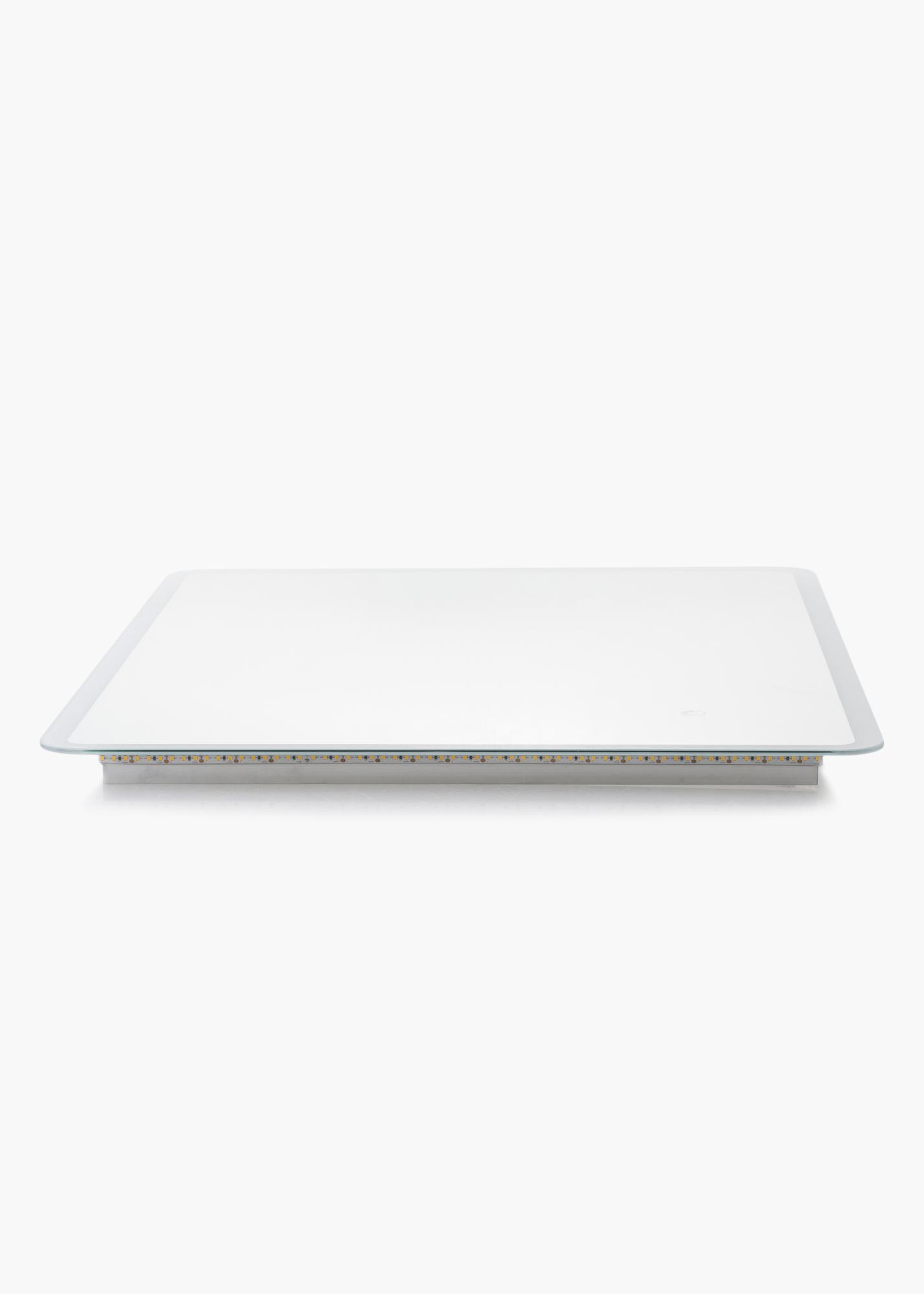 Dette baderomsspeilet i tidløs design har en rektangulær form og myke kanter med avrundede hjørner. Langs kanten er en integrert LED-belysning som rammer speilet pent inn. LED-belysningen lyser opp bak speilet og gir et fint lys fremover i 3000K som er en varmhvit nyanse. Belysningen slås enkelt på ved å trykke på den vanntette berøringsknappen på skjermen og justeres ved å holde knappen nede i noen sekunder. Speilet husker den siste lys innstillingen neste gang du slår på belysningen. Speilet er godkjent for bad.