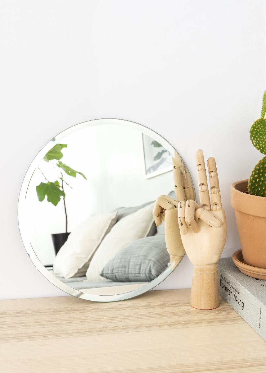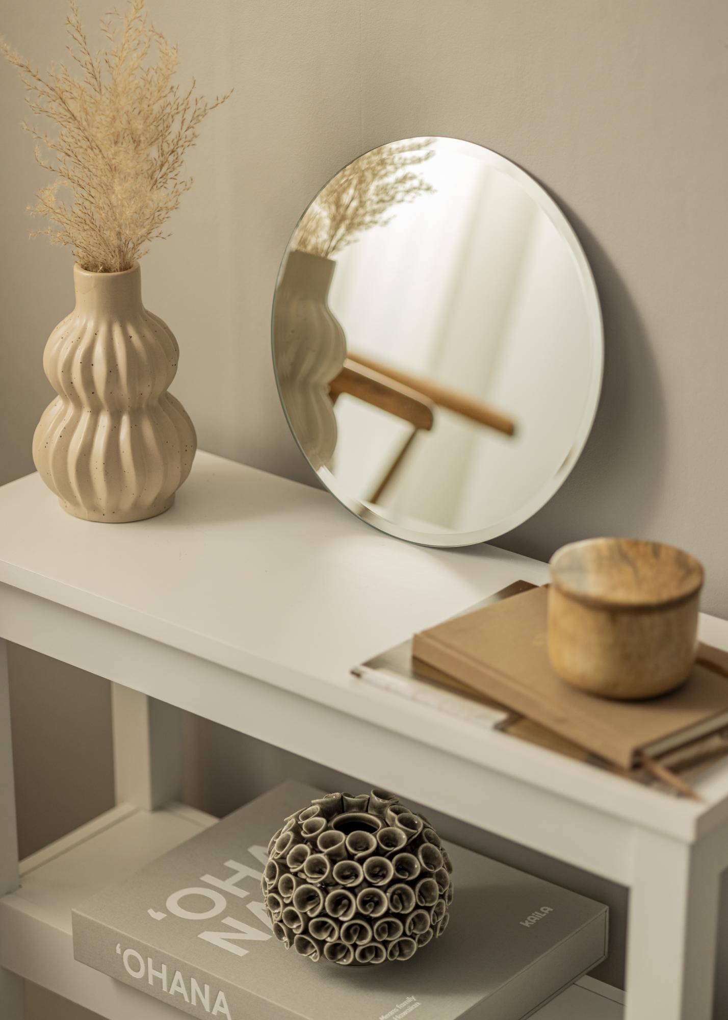 Det er detaljene som skaper helheten! Et eksempel på det prinsippet er dette elegante veggspeilet - dette har en vakker fasettslipt kant som gir det runde og stilrene speilet en eksklusiv fremtoning. Formen til speilet skaper et mykere uttrykk, og den elegante fasettslipte kanten vitner om et øye for detaljer i hjemmet ditt.