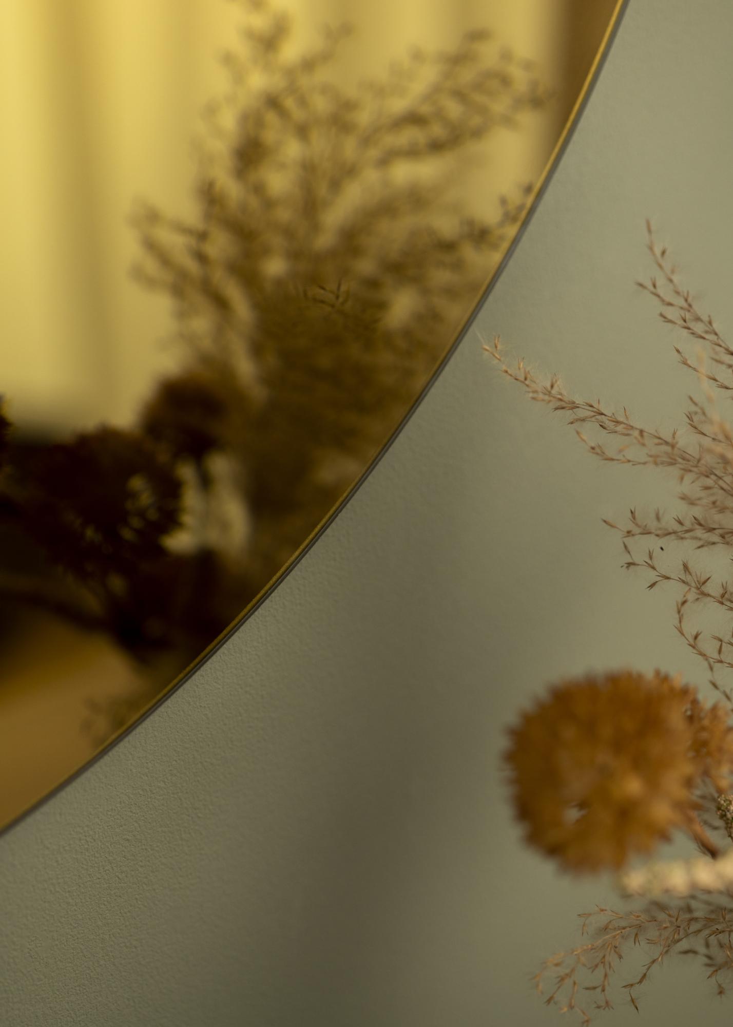Dette runde speilet har et stilrent design med en effektfull vri; et elegant, gulltonet speilglass. Dette gir speilet en luksuriøs fremtoning, samtidig som dette i kombinasjon med den enkle konstruksjonen - tynn og uten ramme - skaper en moderne og smakfull helhet.