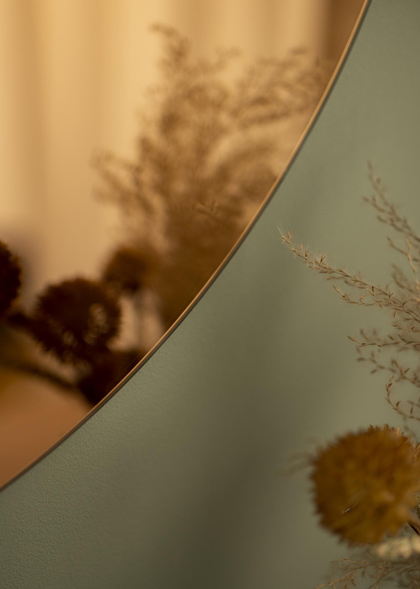 KAILA Rundt speil Rosegull er resultatet når enkel form møter effektfulle detaljer. Dette er et rundt speil som er tynt og uten ramme, som skaper et stilrent uttrykk. Den enkle formen i kombinasjon med det rosegullfargete speilglasset gjør dette speilet til en iøynefallende og elegant innredningsdetalj.